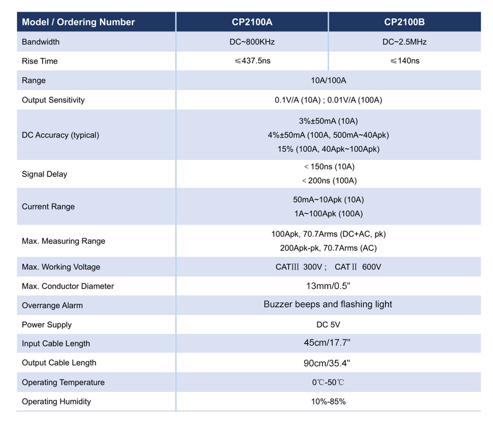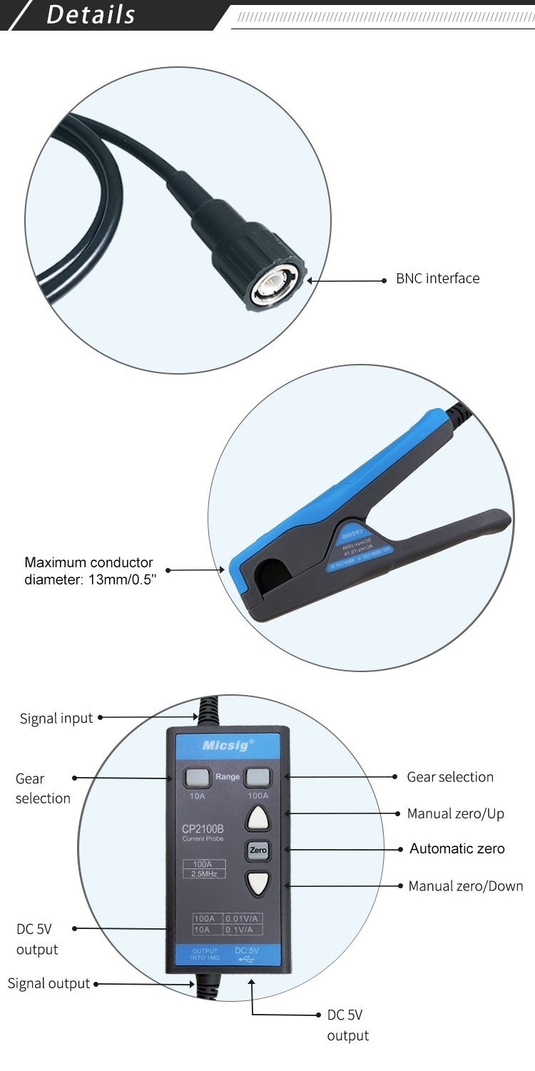 Micsig CP2100B 2.5MHz 10A/100A AC DC Current Probe USB Powered for Oscilloscopes with BNC Interface