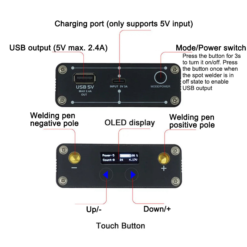 MinderRC DH30 Mini Pulse Spot Welder Pulse Welding Machine 5000Mah Battery OLED with Power Adapter