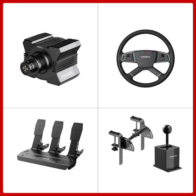 MOZA R5 5.5Nm DD Wheel Base + 15.8" TSW Truck Wheel + 3-Pedal SRP Lite + Table Clamp + HGP Sim Shifter