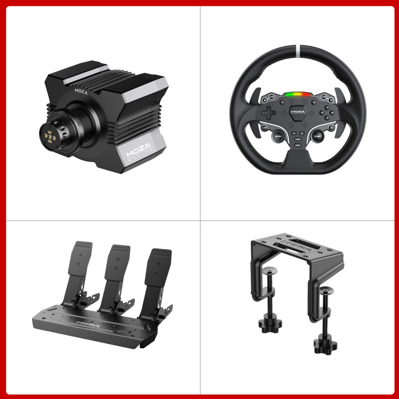 MOZA R5 5.5Nm Direct Drive Wheel Base + 11" ES Steering Wheel + 3-Pedal SRP Lite + Table Clamp