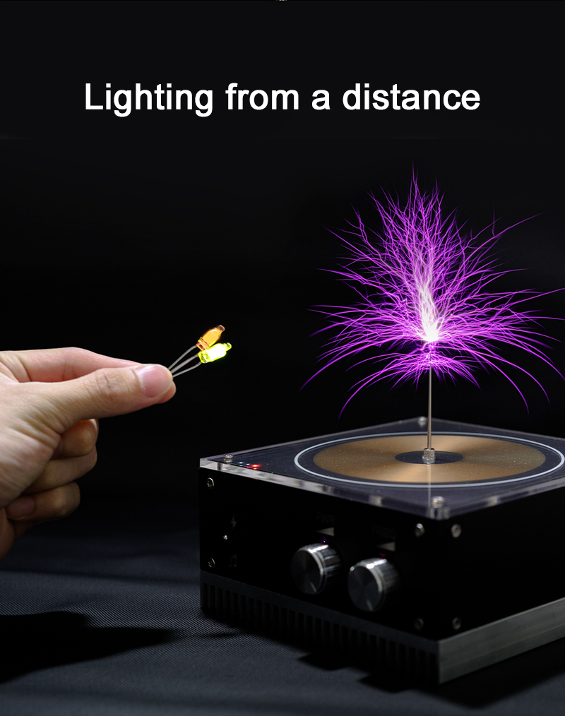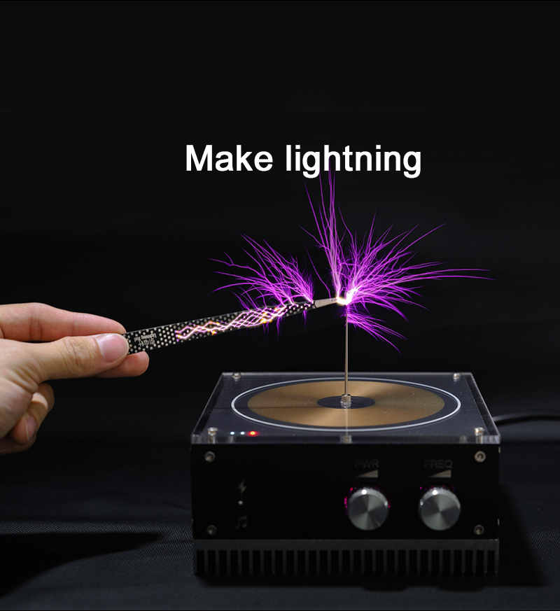 A: When you are close to the Tesla coil, there will be lightning hitting your hand. The feeling of hitting your hand is very weak, but there is a certain temperature (one-tenth of the temperature of a lighter) without any danger to life. Please keep away from flammable and explosive materials.
