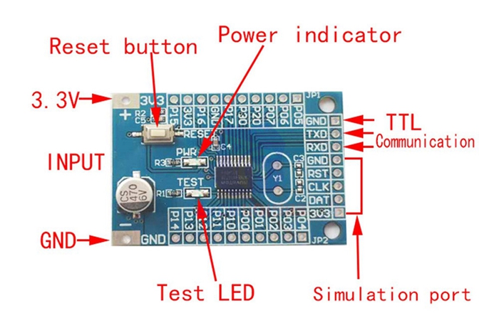 - IO port, power input, programming hole, and serial port are all exported for easy development.