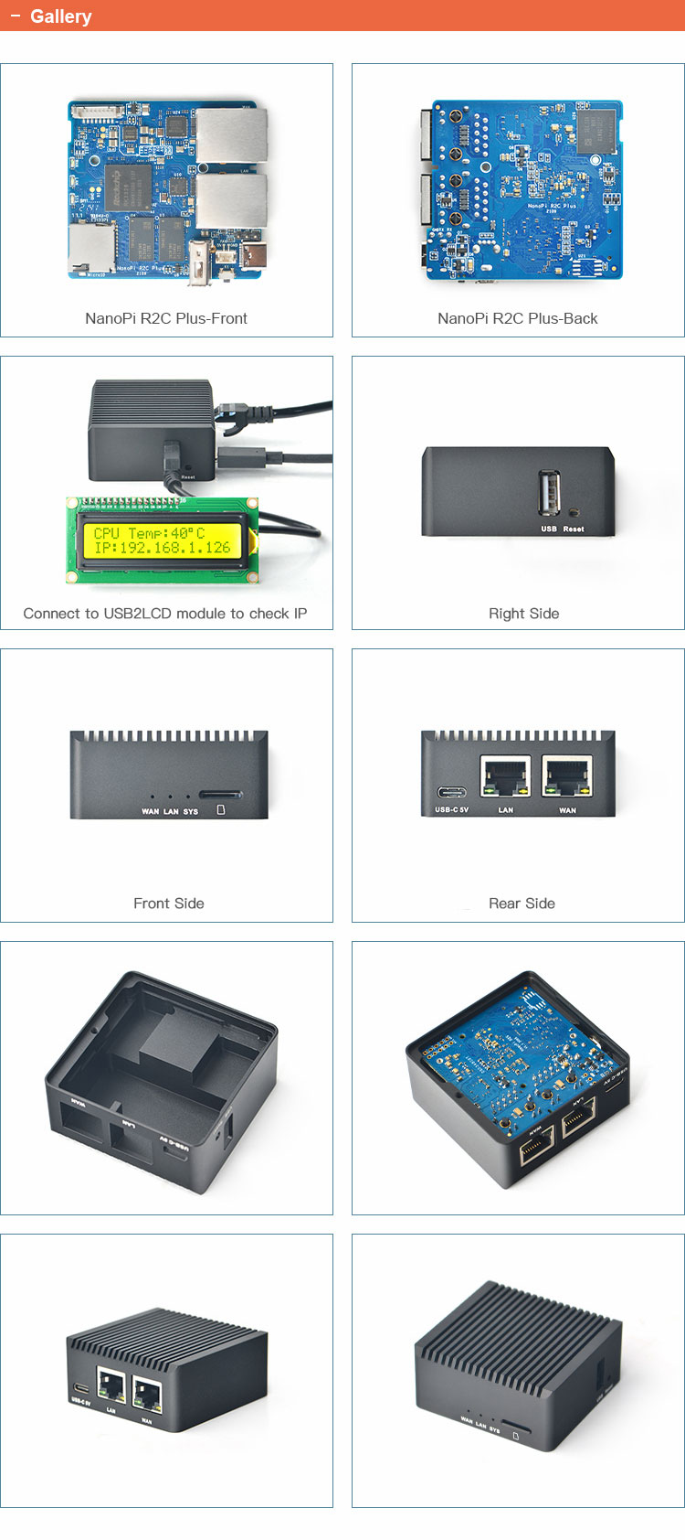 - Can be connected to USB2LCD to quickly check IP. Plug and play. Connect a USB2LCD module to quickly check the IP and temperature of the NanoPi R2C Plus. No need to open your computer, and get rid of cumbersome operations