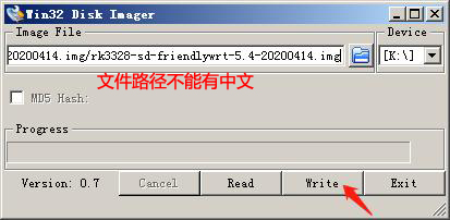 2. Flash to TF card: Unzip the downloaded system firmware and the flashing tool win32diskimager.rar separately, insert a TF card for Windows (only 4G and above Class10 cards), right-click to run the flashing tool win32diskimager as an administrator. And on the interface of the flashing tool win32diskimager, select your TF card drive letter (you must choose the right drive letter, otherwise there is a risk of formatting other mobile hard drives), select the system firmware you want to burn, and click the Write button to burn.