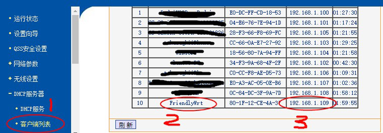 3: Use WAN port connection to log in: check the IP address of the R2S router, first connect the WAN port of the NanoPi R2S to the LAN port of your upper-level router, then log in to your upper-level router, check the client list, and find the host name that corresponds to FriendlyWrt IP address, as shown below
