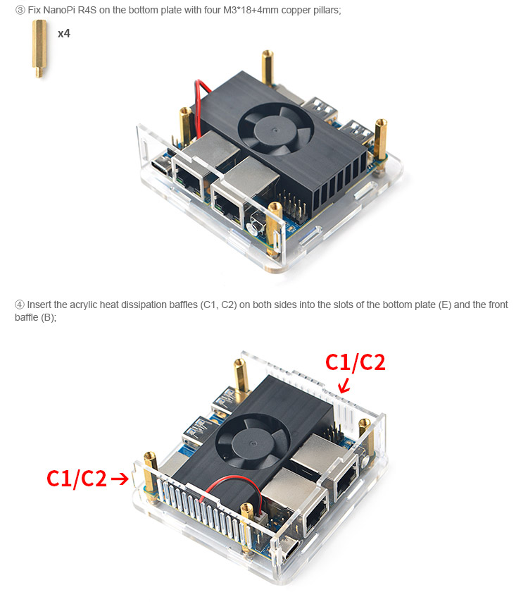 NanoPi R4S Mini Router 1GB Memory Acrylic Shell DIY Kit Unassembled RK3399 Two Gigabit Ethernet Port