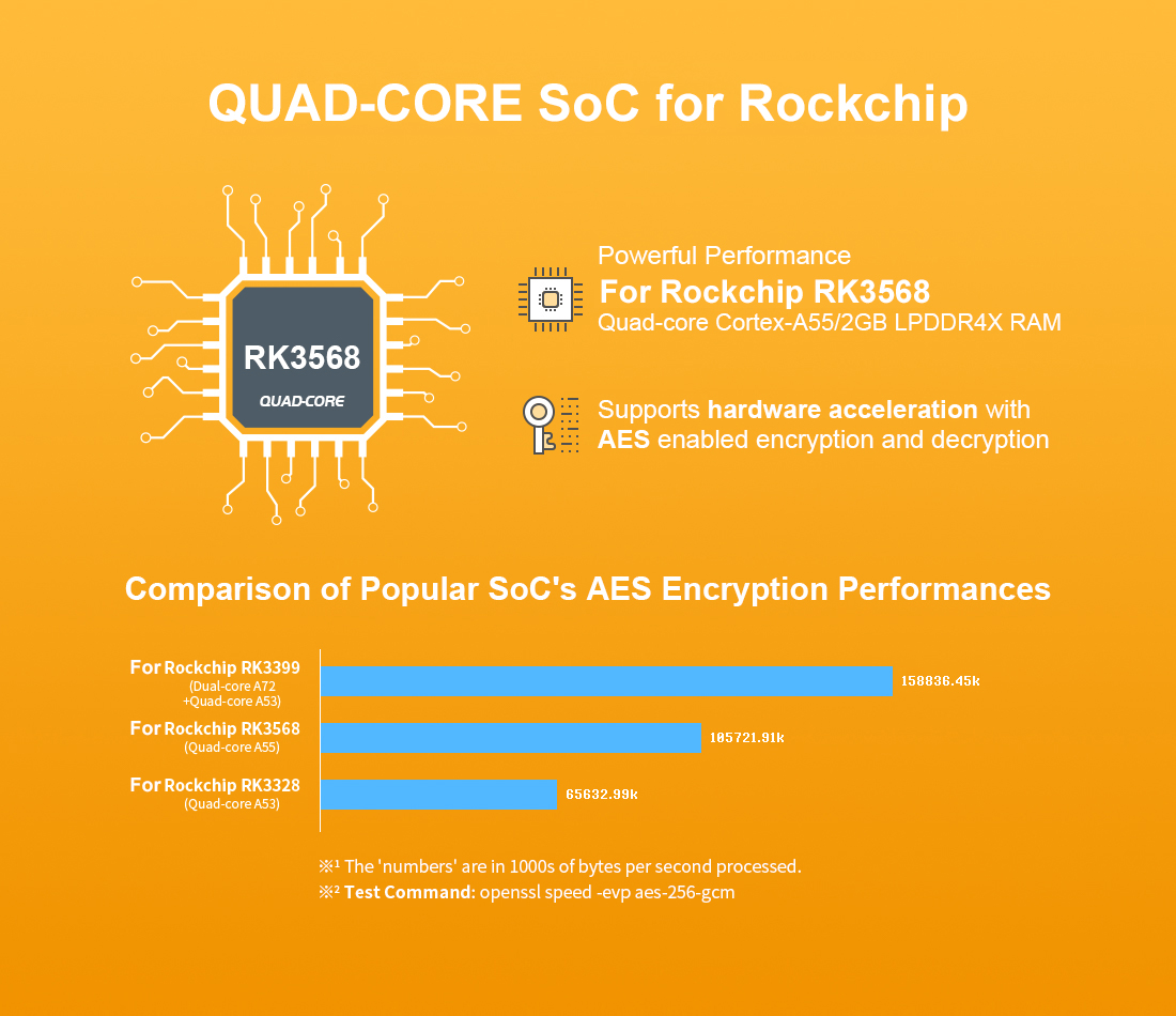 - CPU: Model: RK3568B2 for Rockchip. Number of Cores: Quad-core for ARM Cortex-A55. Frequency: 4 x Cortex-A55 up to 2.0GHz