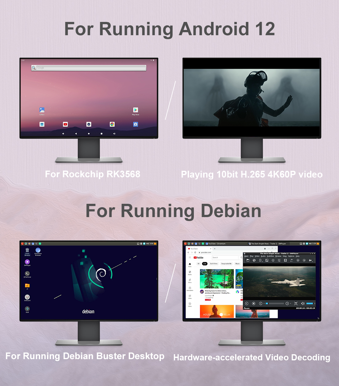 - OS Support: for FriendlyWrt 22.03 (64-bit), Debian Buster Desktop (64-bit), and FriendlyCore Focal Lite (Base on that for Ubuntu 20.04)