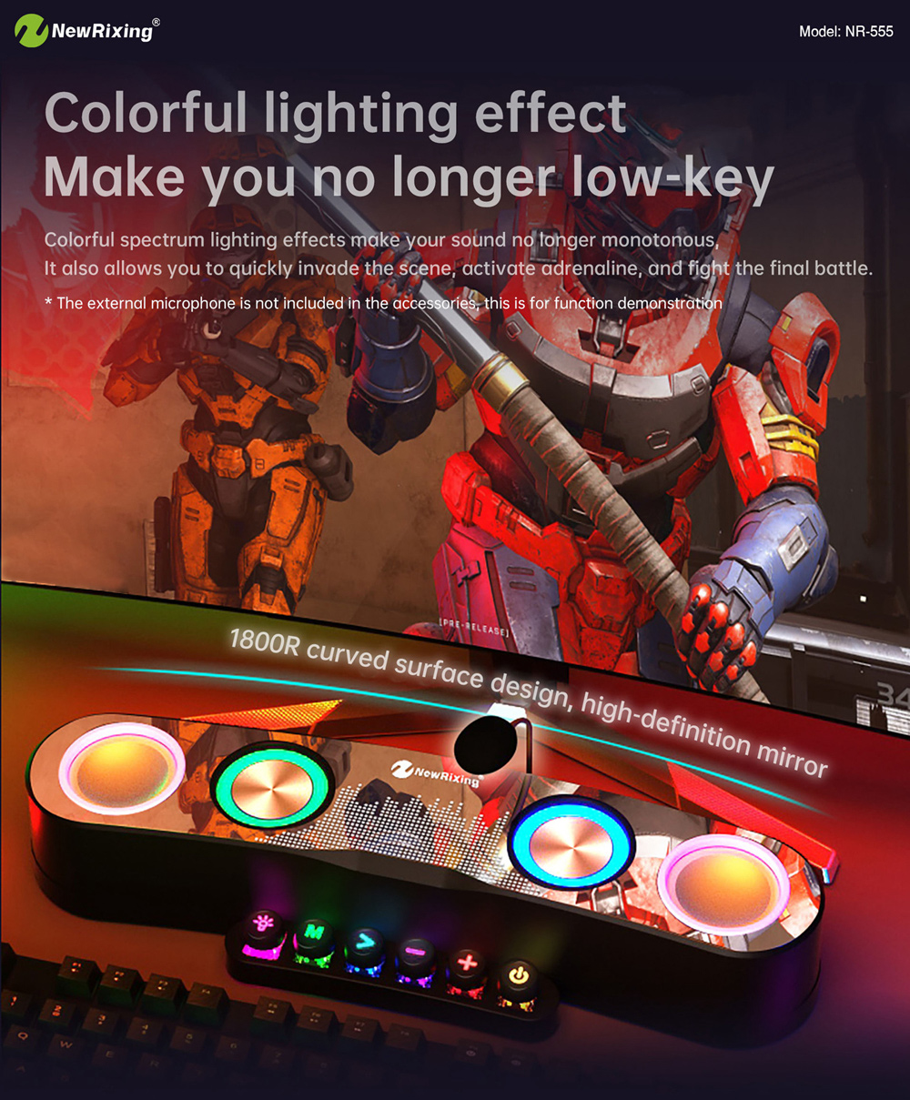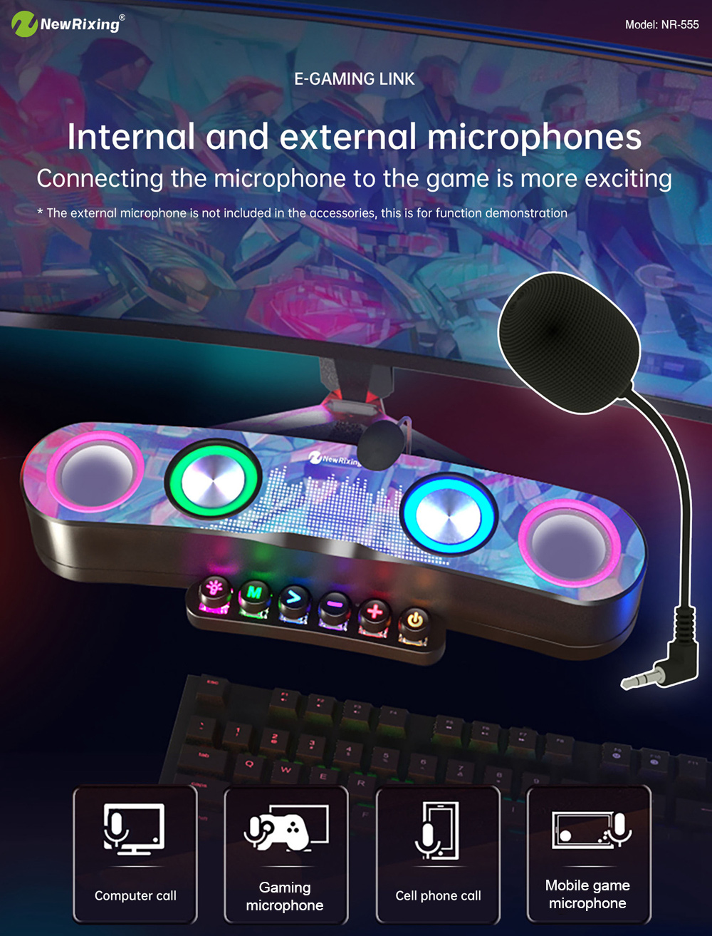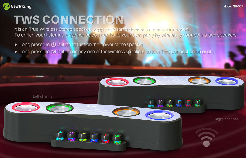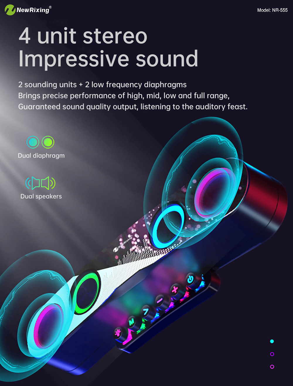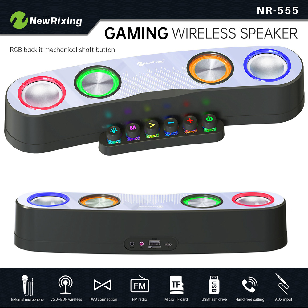 NewRixing 5Wx2 Gaming Speakers Bluetooth Speakers Subwoofer w/ Colorful LED Lights for Karaoke Games