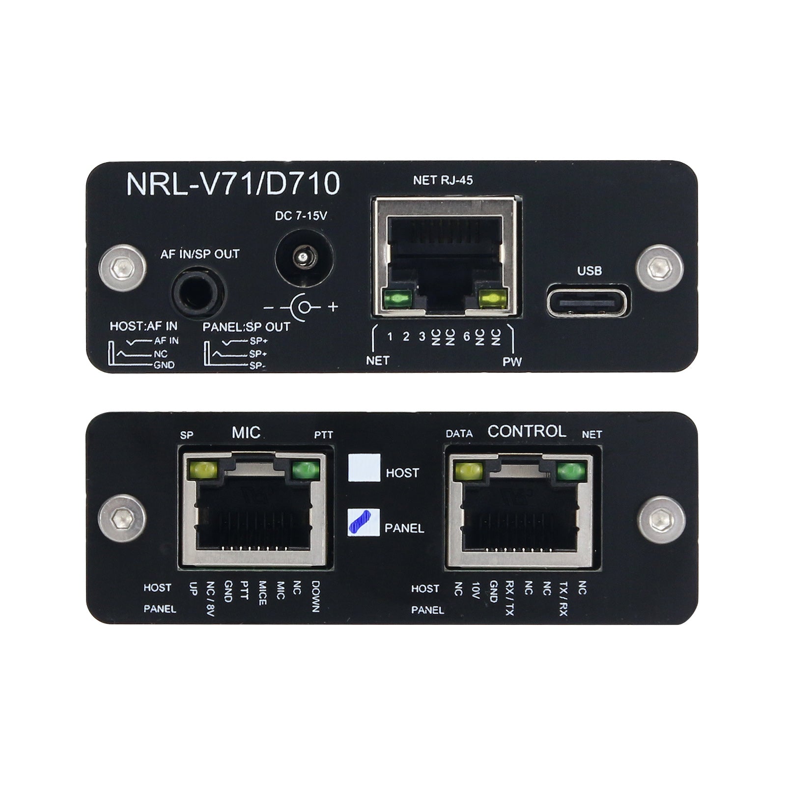 NRL-V71/D710 is specially designed for KENWOOD V71 and D710. Through the network, NRL-V71/D710 can be connected to the host and the panel of your transceiver.