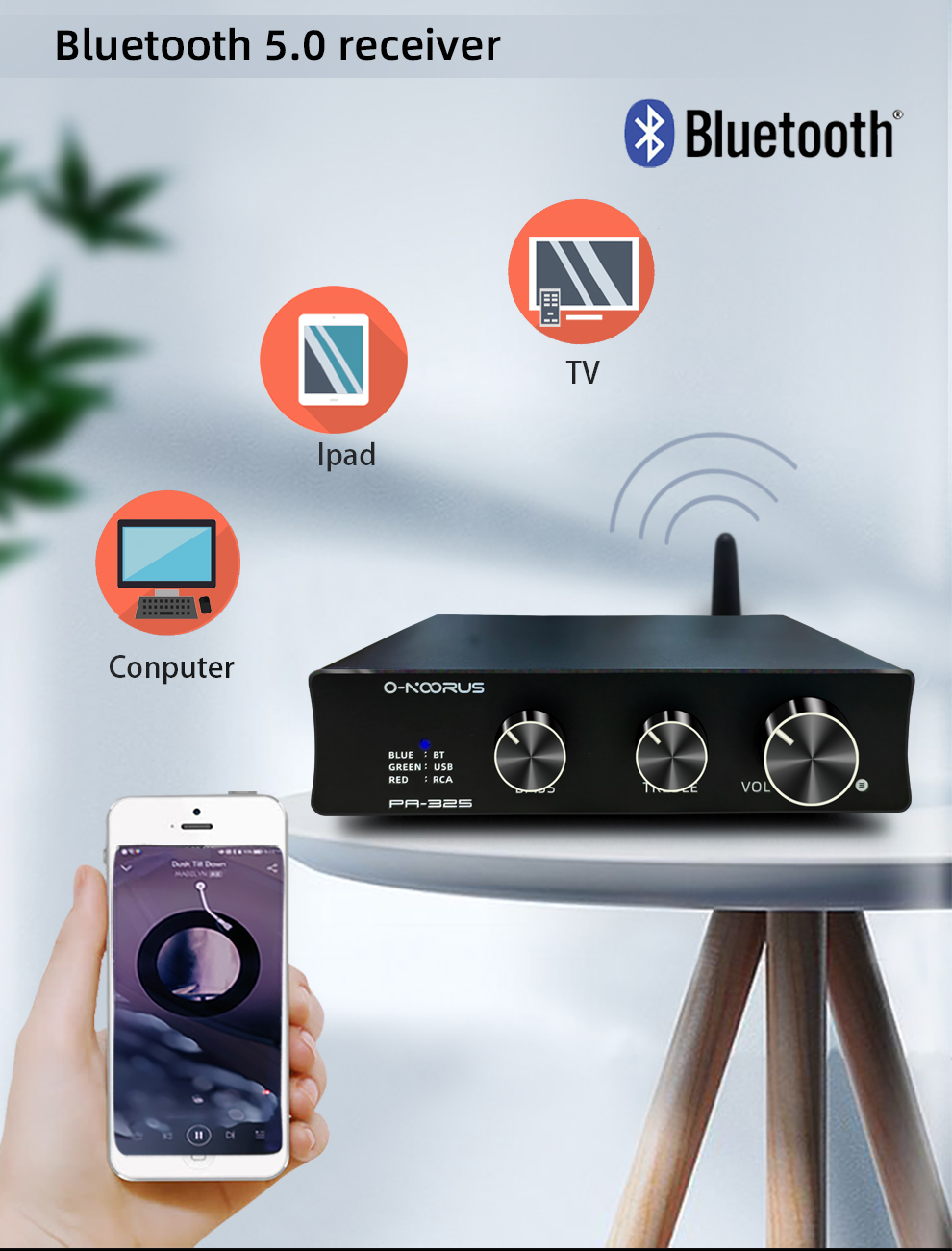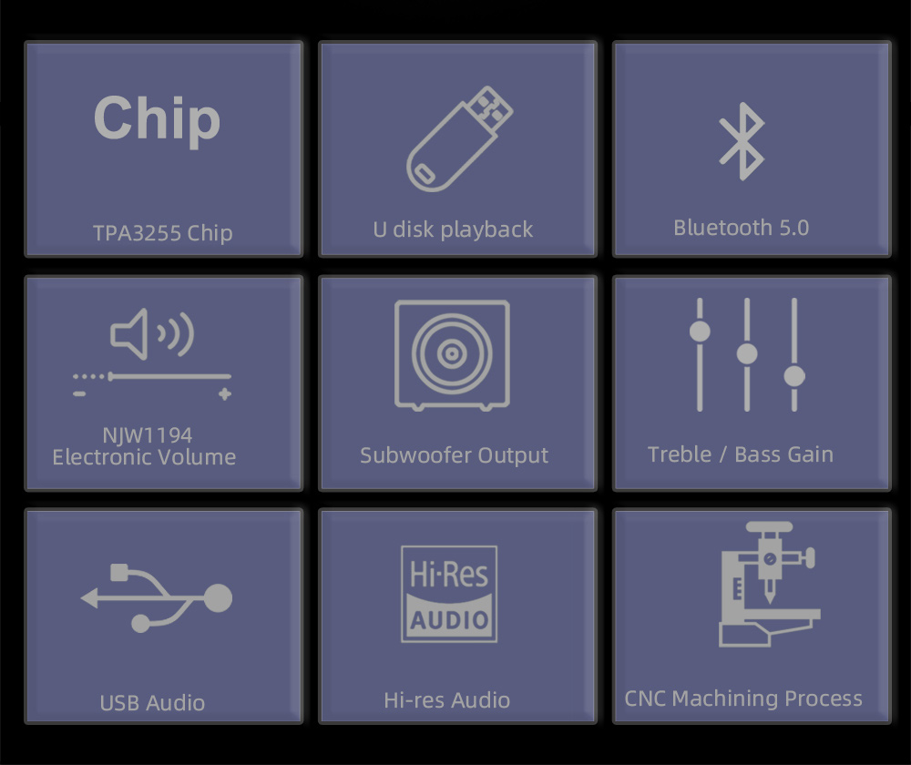 - HiFi-level Bluetooth stereo 2.1-channel home theater amplifier with exquisite appearance and excellent performance parameters.