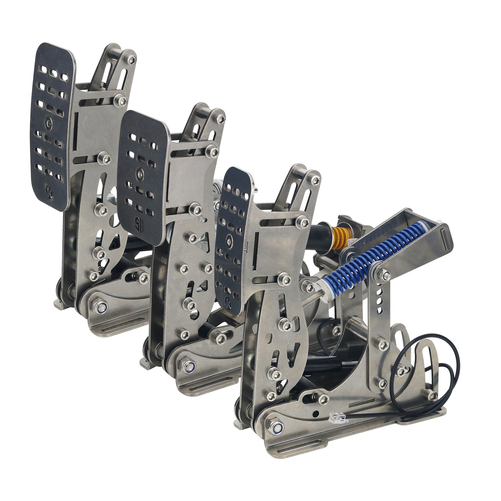 - All structural parts are CNC precision laser cut stainless steel with a glass bead blasted finish. The pedals are durable, sturdy and compact. Mathematical models are used to design the pedal travel and adjustability, and the mechanical structure can be used to adjust the different power feelings of the pedal.