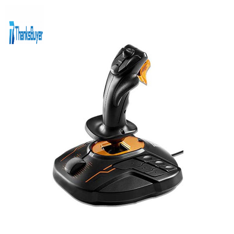 - The T.16000M FCS features 4 independent axes, including twist (controlled by rotating the stick), 16 action buttons with "braille"-style physical button identification, one 8-way Point of View (PoV) hat switch and an ergonomic trigger. Its striking orange accents and backlighting bring gamers' immersion to a whole new level.