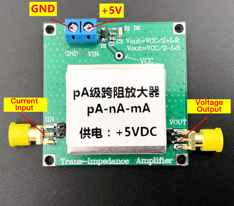 It is a TIA transimpedance weak current measurement module, an IV conversion preamplifier. pA-nA-mA is specifically designed for silicon photodetection.