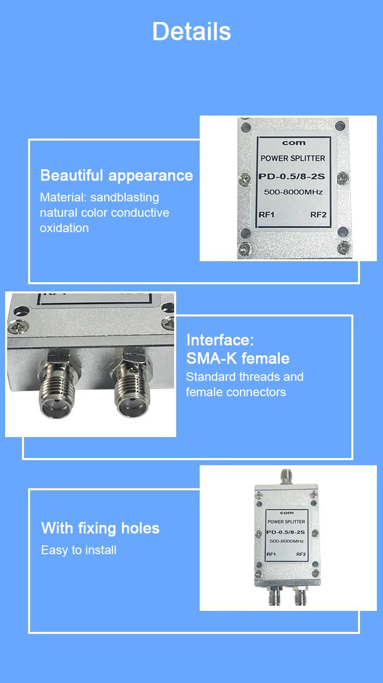 PD-0.5/8-2S 0.5-8GHz Microstrip Power Divider 500-8000MHz 2-Way Power Splitter RF Power Combiner