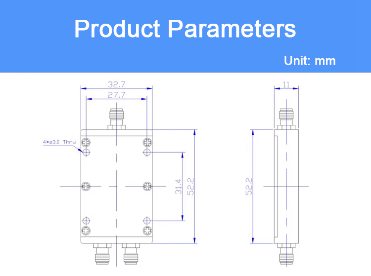 - Wide frequency band, low insertion loss, high isolation and stable performance