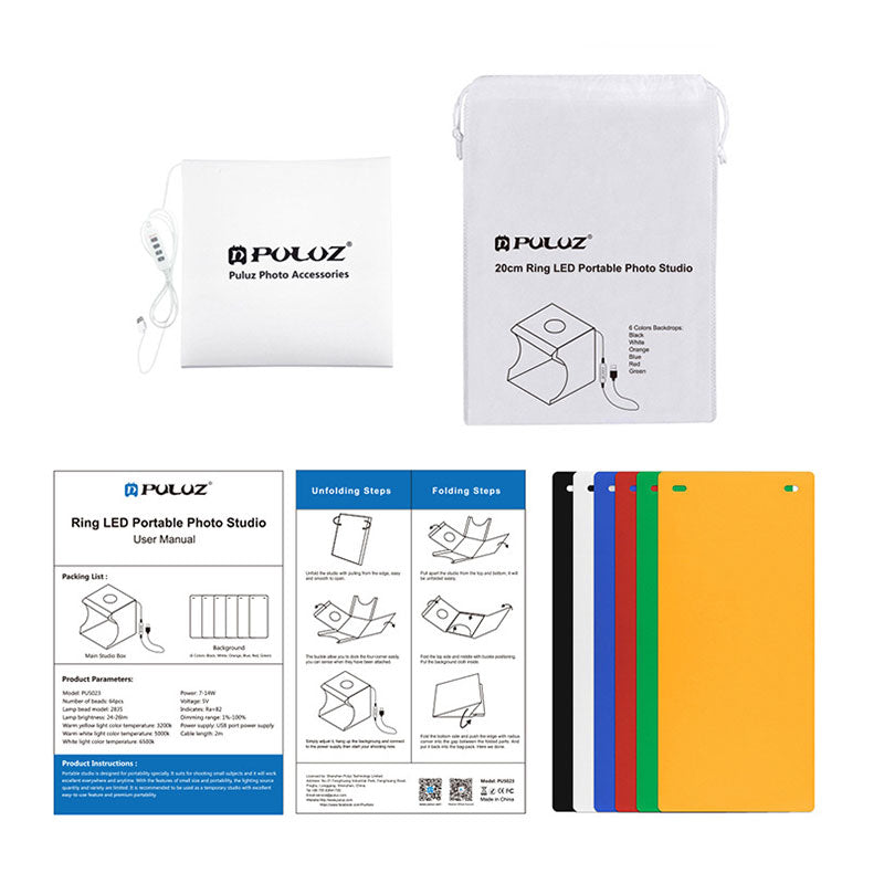 Photo Tent Box Portable Photo Studio Light Box Kit with 6-Color Backgrounds (20cm Ring LED) PU5023