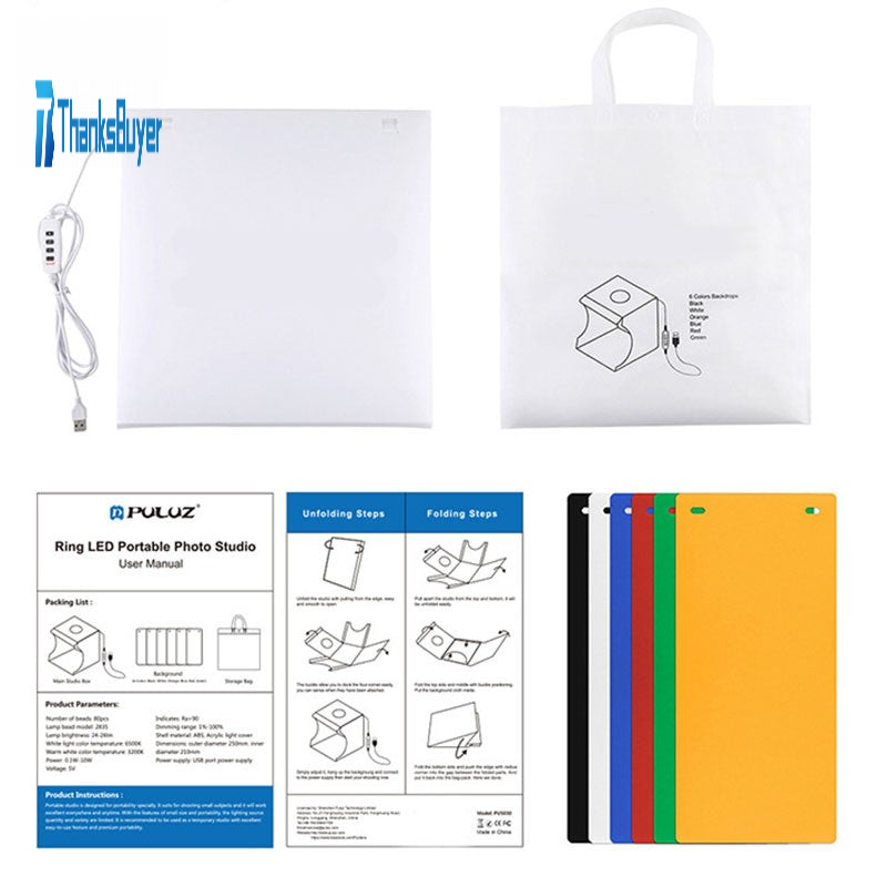 Photography Light Box Portable Photo Studio Light Box Folding Light Box w/ 6 Color Background PU5030