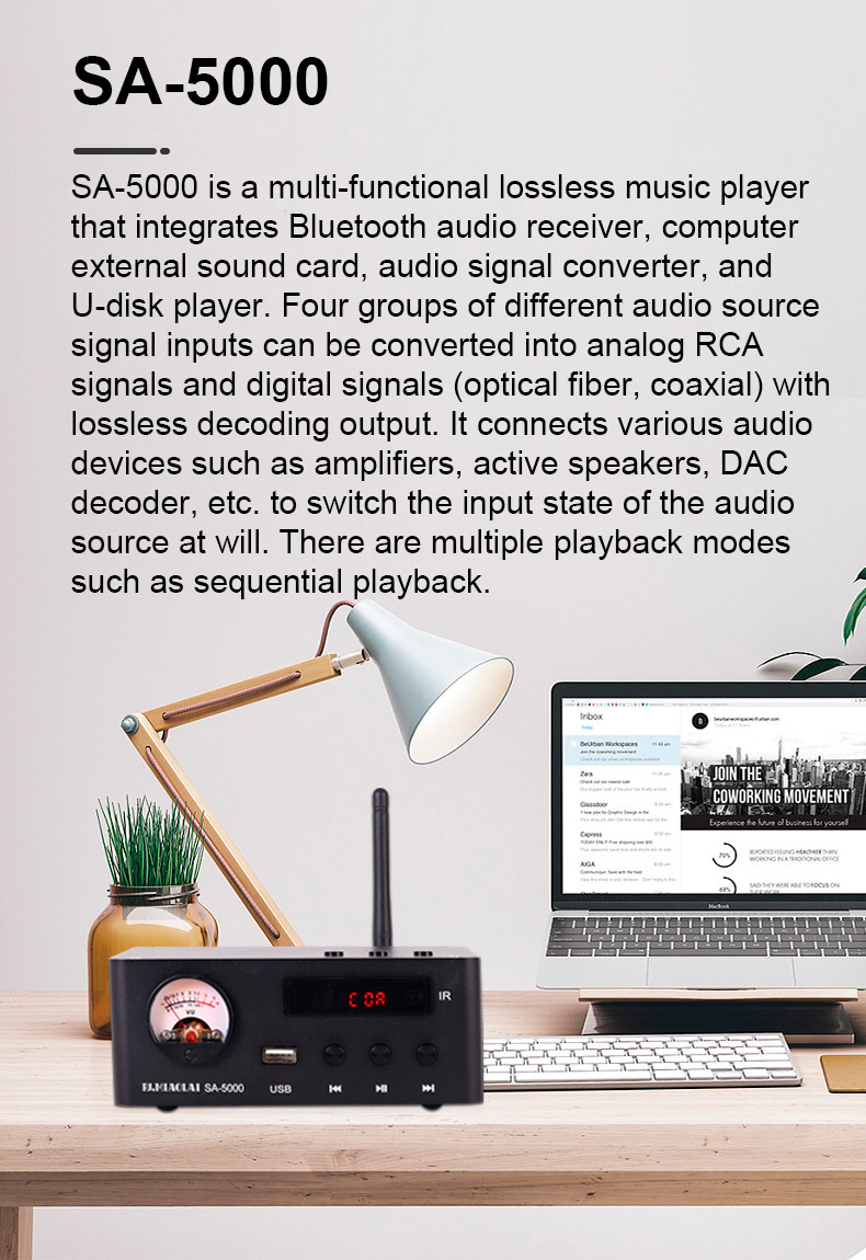 PJ MIAOLAI SA-5000 Audio Decoder High Fidelity Multi-functional Lossless Music Player Optical and Coaxial DAC