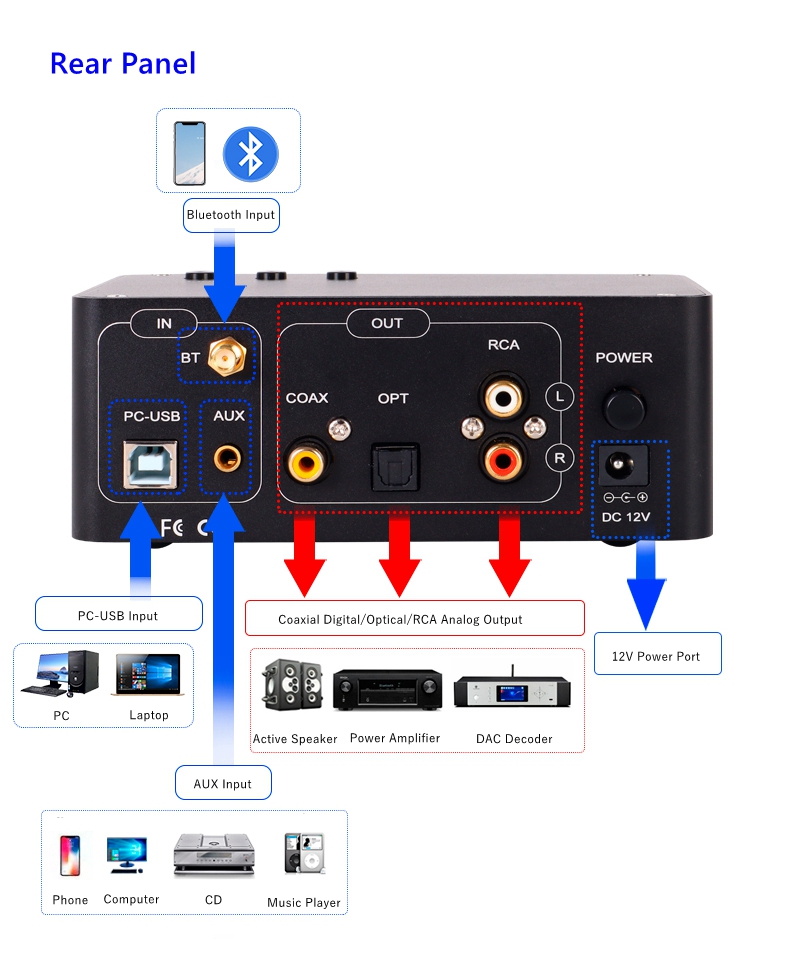 - Optical/Coaxial frequency: 32K, 44.1K, 48K