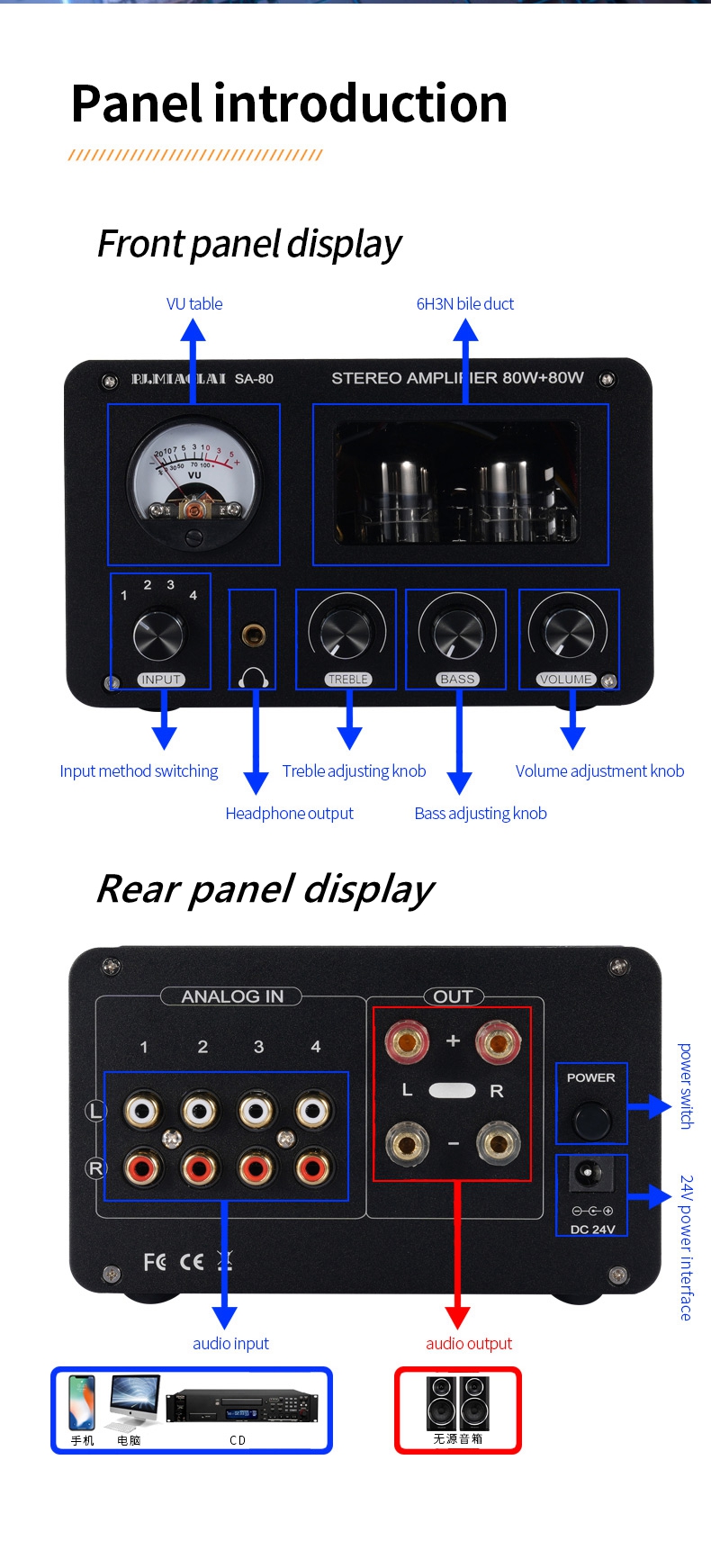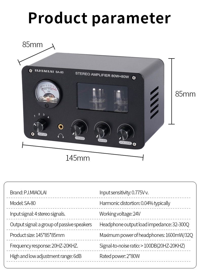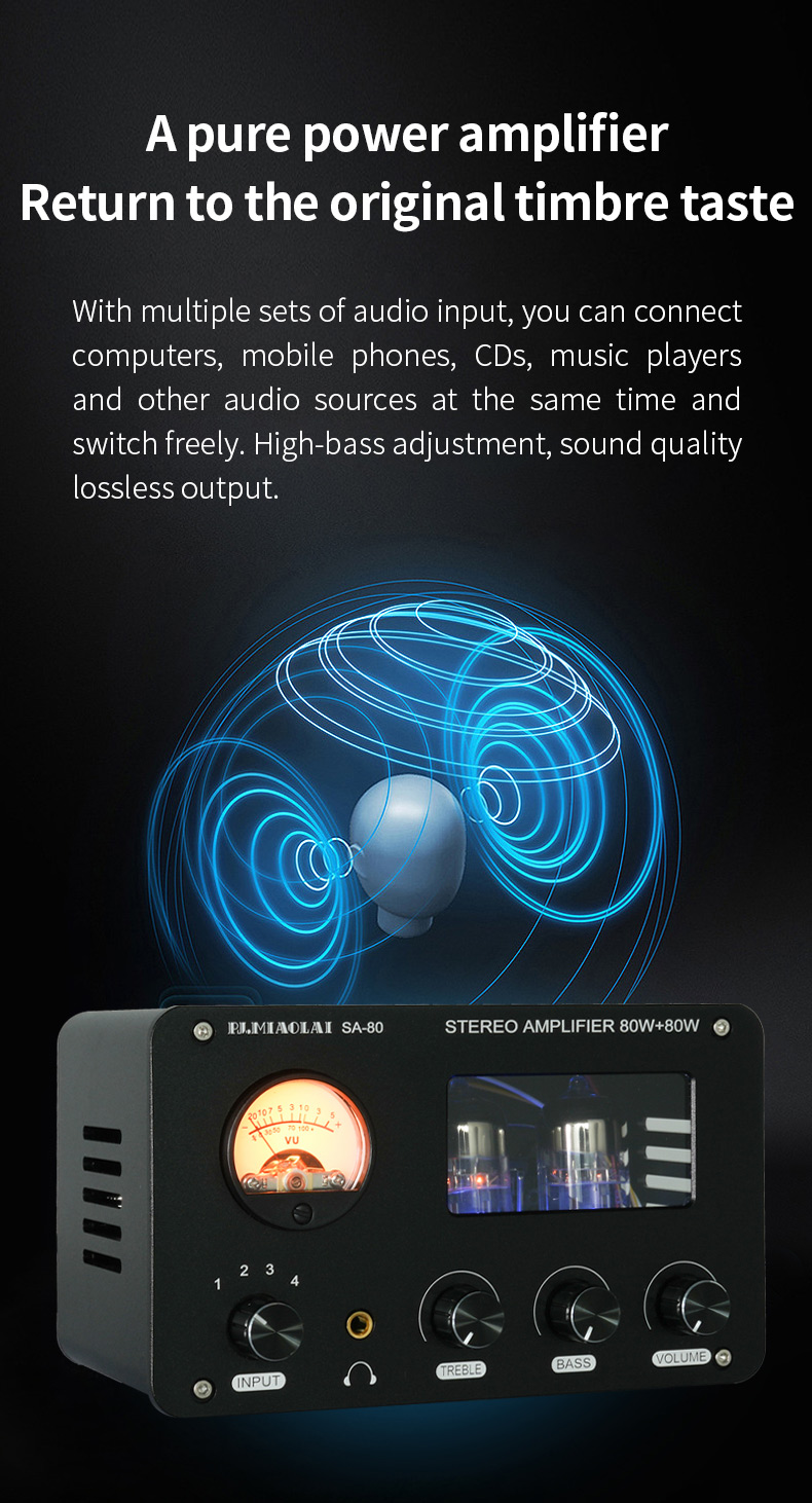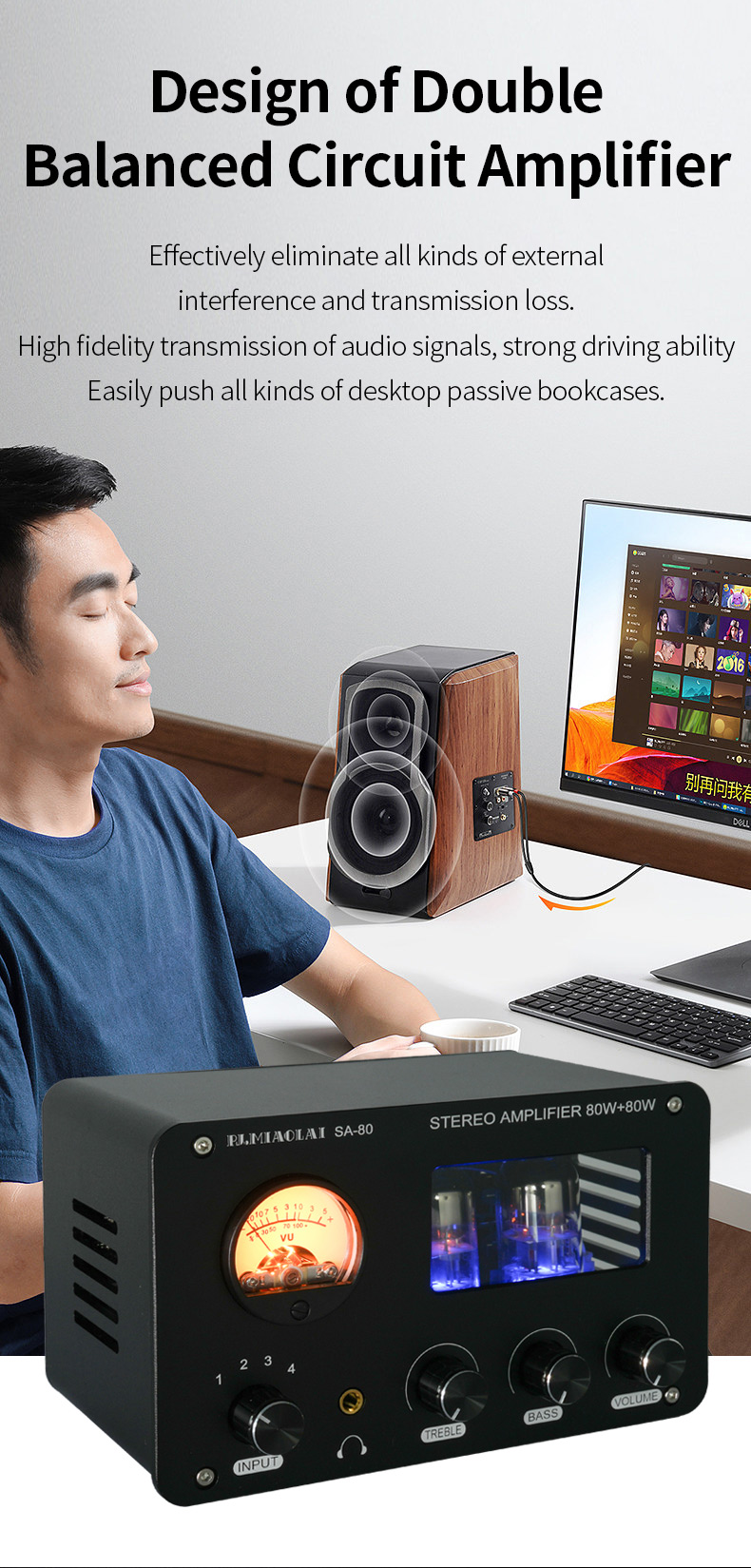 PJ MIAOLAI SA-80 High Power Electronic Tube Amplifier HiFi Headphone Amplifier Treble and Bass Adjustment