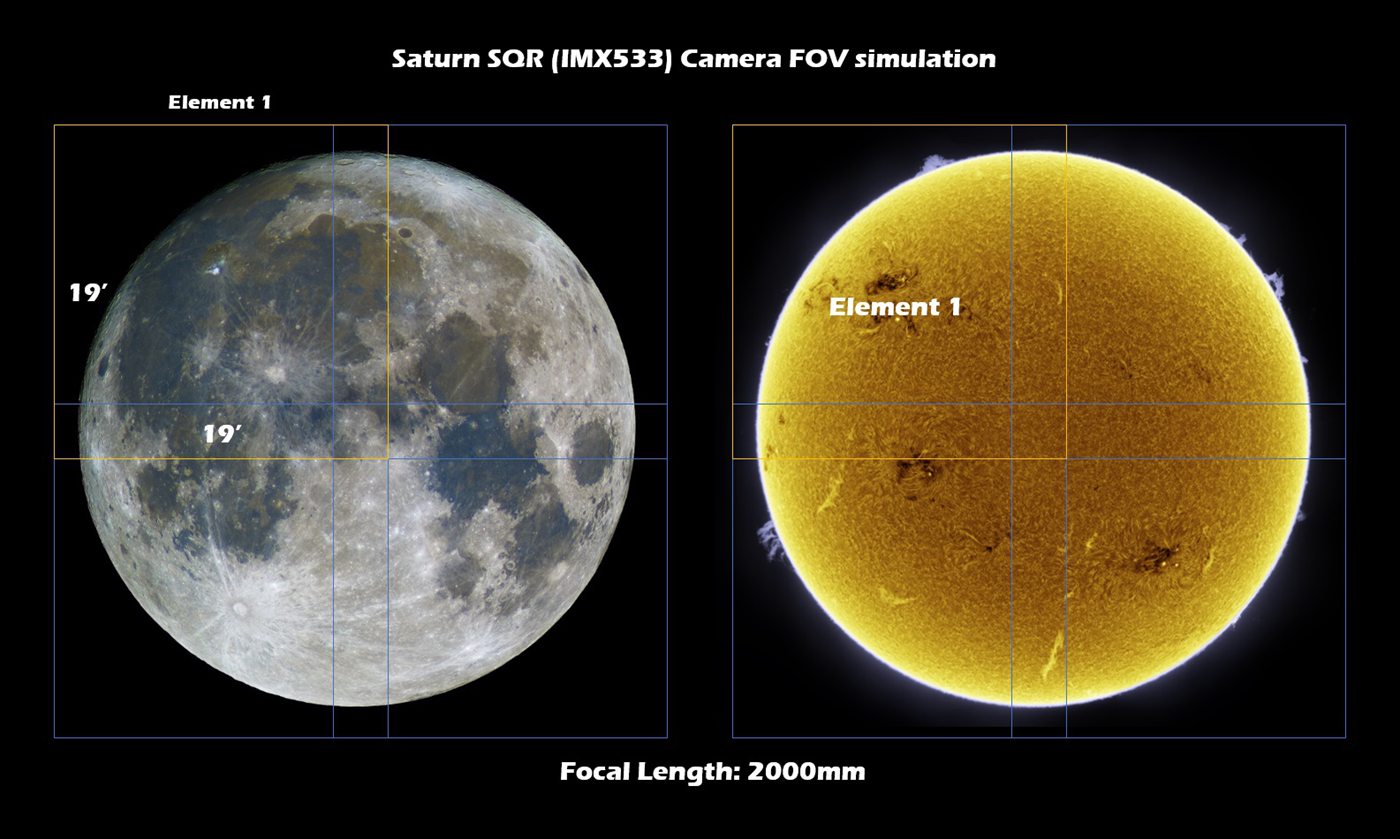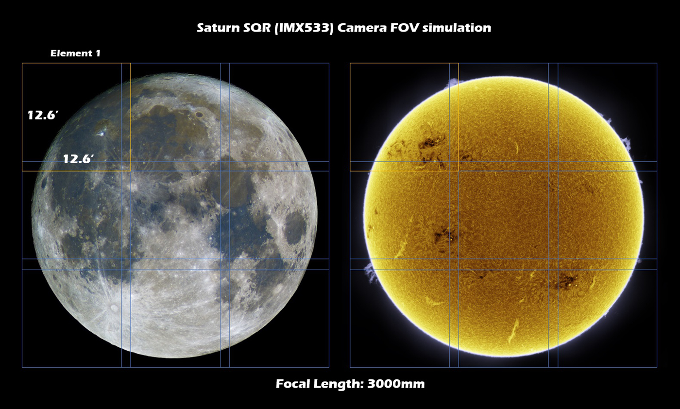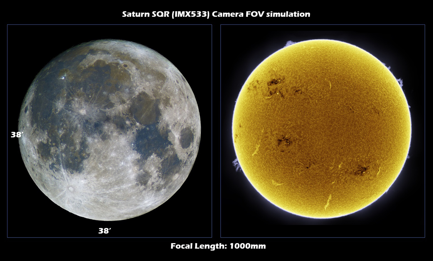 Saturn SQR camera is also very good for lunar and planetary imaging. Its 1" big format and 9MP total pixels make it easier to collect full disk of the Moon and the Sun, or make mosaic more efficient.