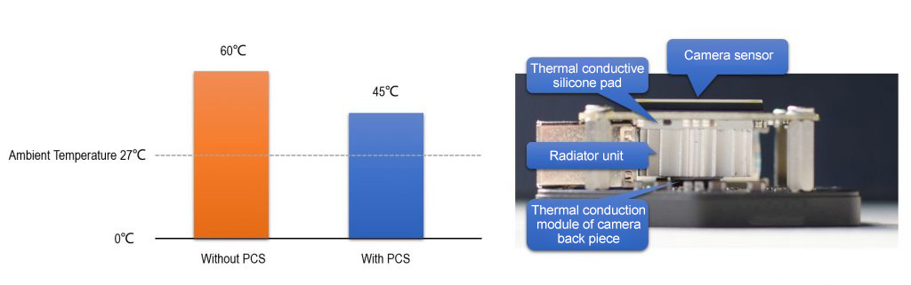 ACS can provide much better temperature control. When camera has PCS + ACS, temperature is only 7℃ higher than ambient. Camera body is a little warm but won't hot!