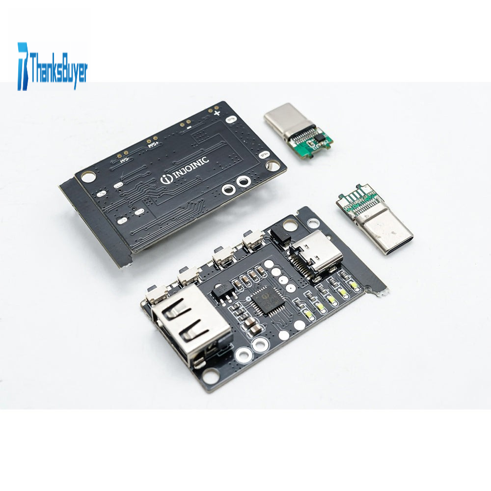 With a super compact design, the size of its entire PCB board is only 1.6x1" (40x25mm). In addition, the components on the PCB board are also very simple, and the core device IP2726 chip for INJOINIC is used.