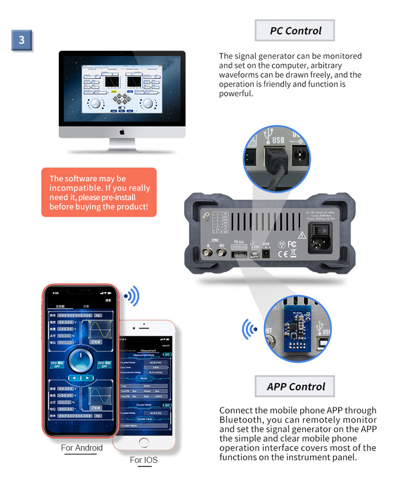 4. Provide computer software and mobile phone APP to control PSG9060;