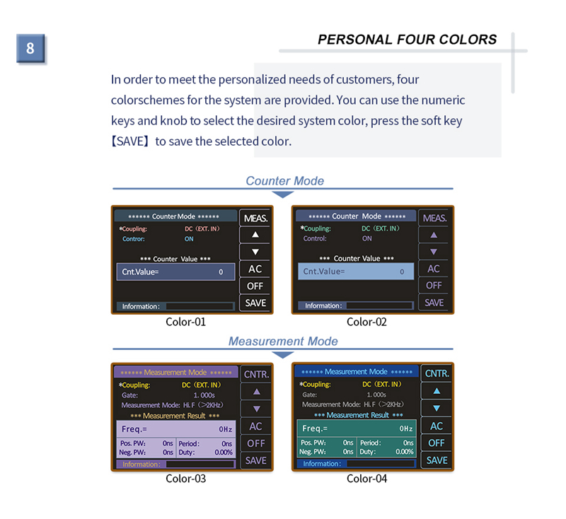 10. Measure the frequency, period, and duty cycle of the input signal, with counter function.