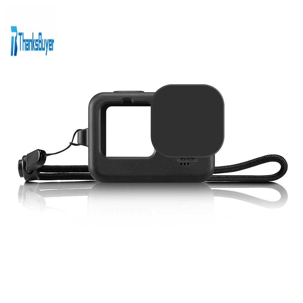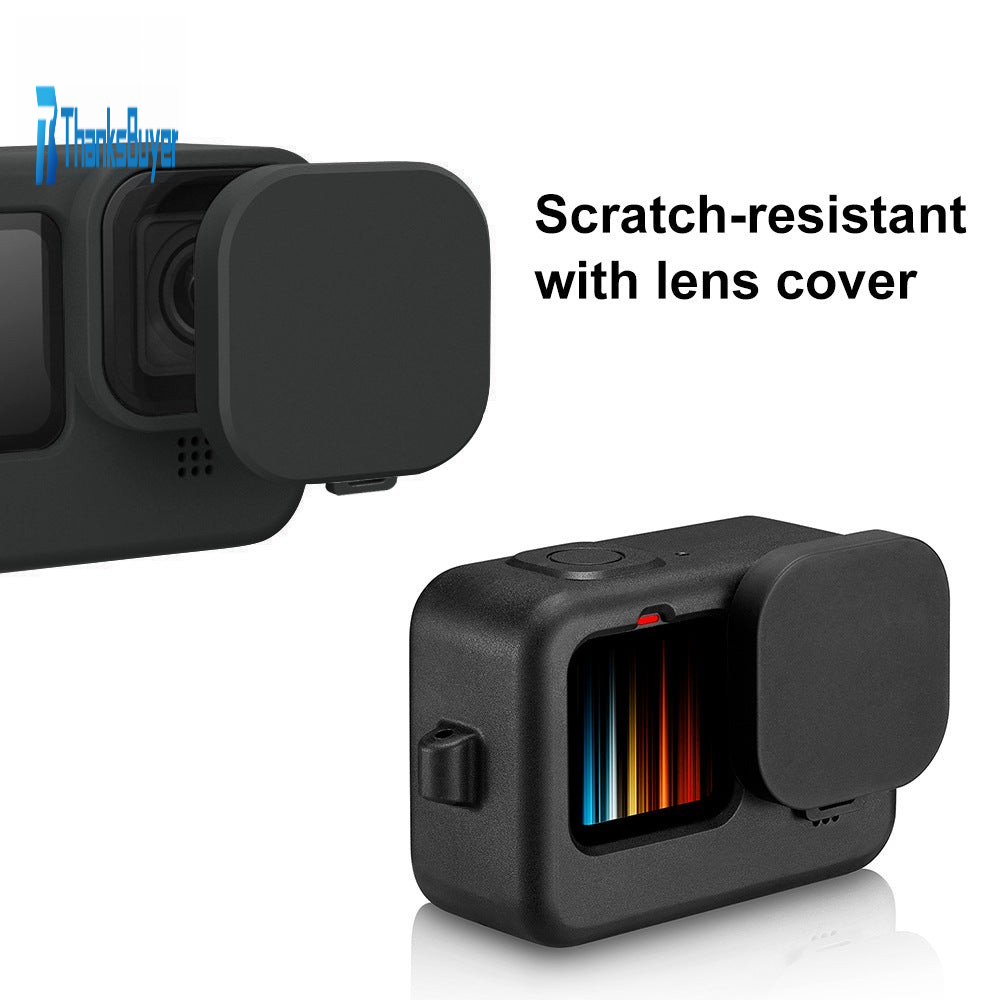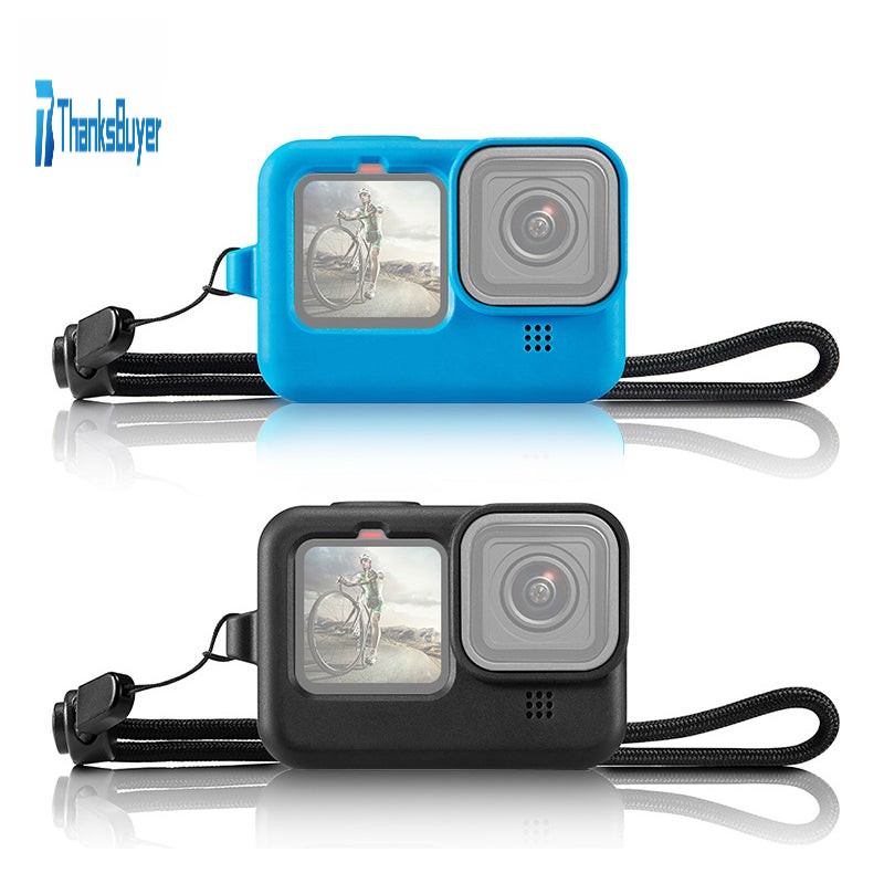 PU518 Camera Silicone Protective Case Cover With Wrist Strap & Lens Cover For GoPro HERO 9 Black