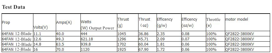 With QF2822-3800KV motor and 12 blades, 64mm duct is powerful and efficient! It features low temperature. Suitable for power modification of ducted UAV below 1200g. It is an ideal choice for you!