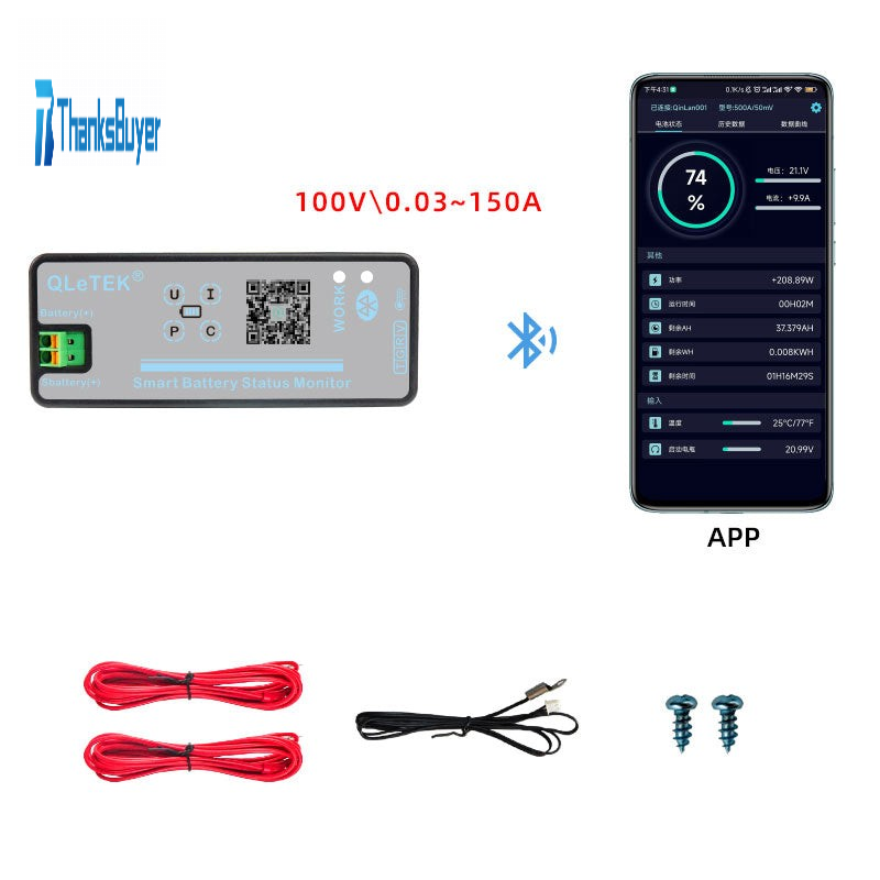 QLeTEK KL150A 100V 150A Bluetooth Smart Battery Monitor Coulometer Voltmeter Voltage Current Meter