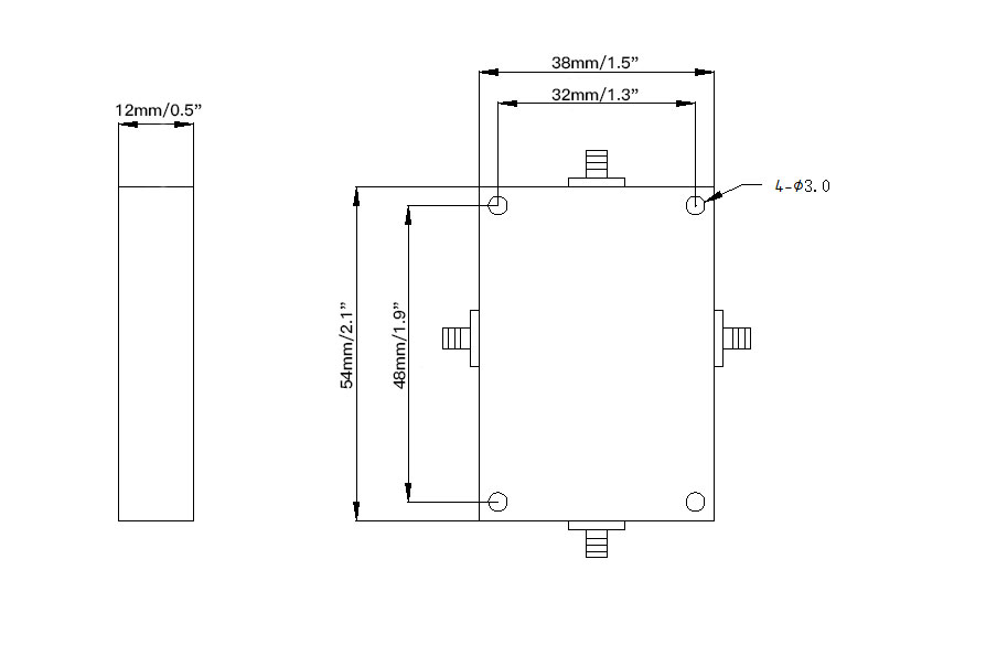 - Module size: 54 x 38 x 12mm/2.1 x 1.5 x 0.5" (with mounting holes)