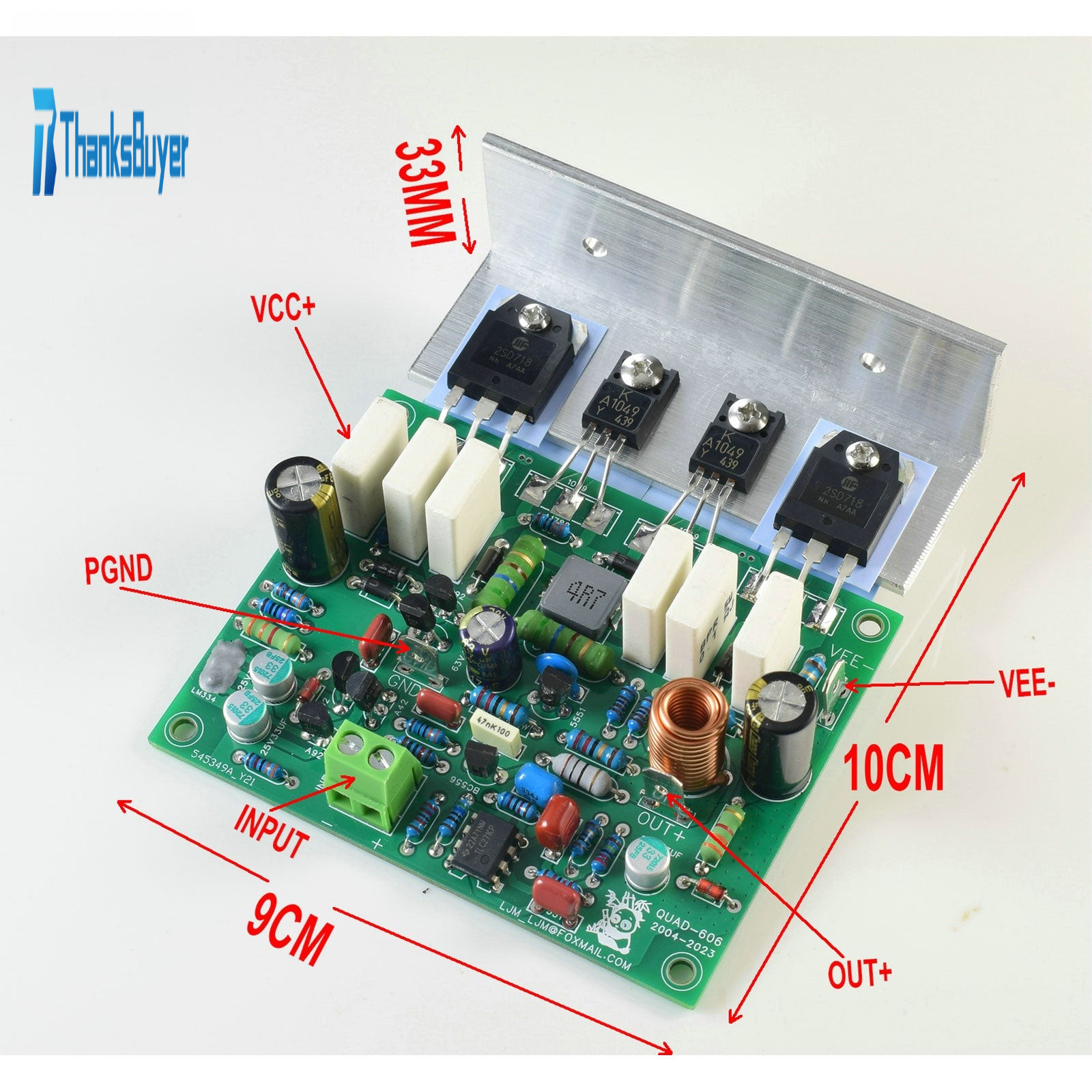 It is an imitation of the classic power amplifier for QUAD 606. It is an upgraded version of QUAD405. It comes with six transistors and a angle aluminum.