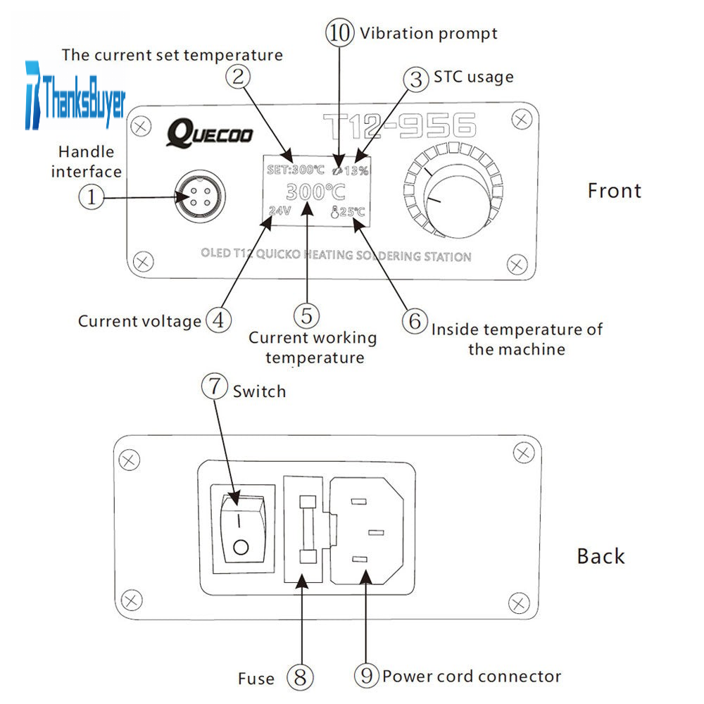 QUICKO T12-956 OLED T12 Quick Heating Solder Station Kit with Soldering Handle & US Power Cable