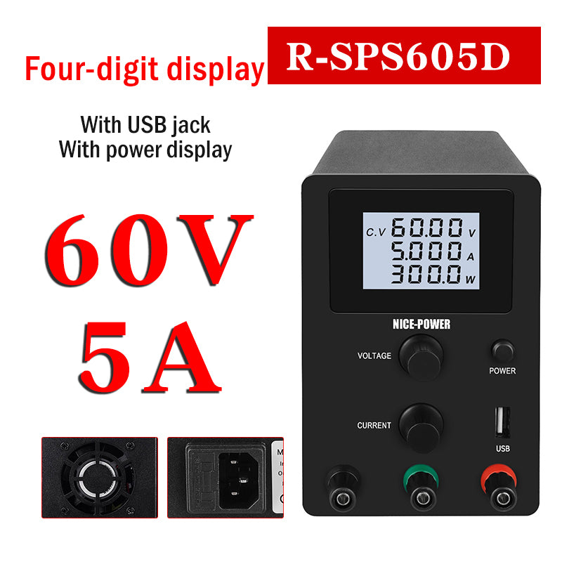R-SPS605D Adjustable DC Power Supply Switching Power Supply Output 0-60V 0-5A 4-Digit Display Black