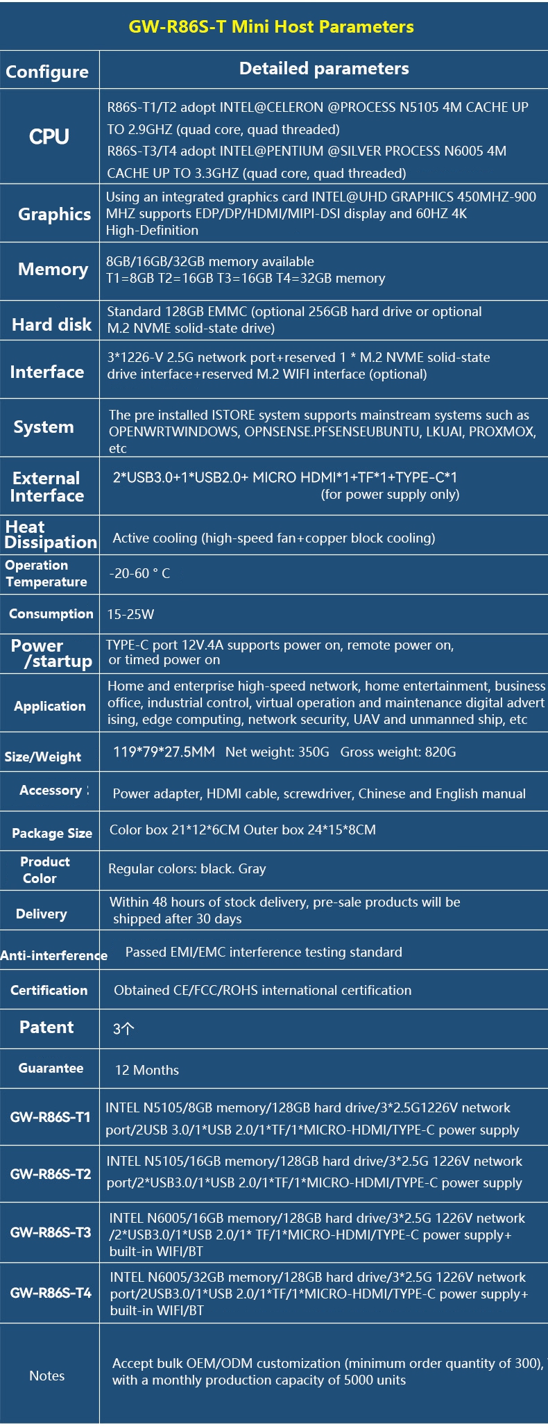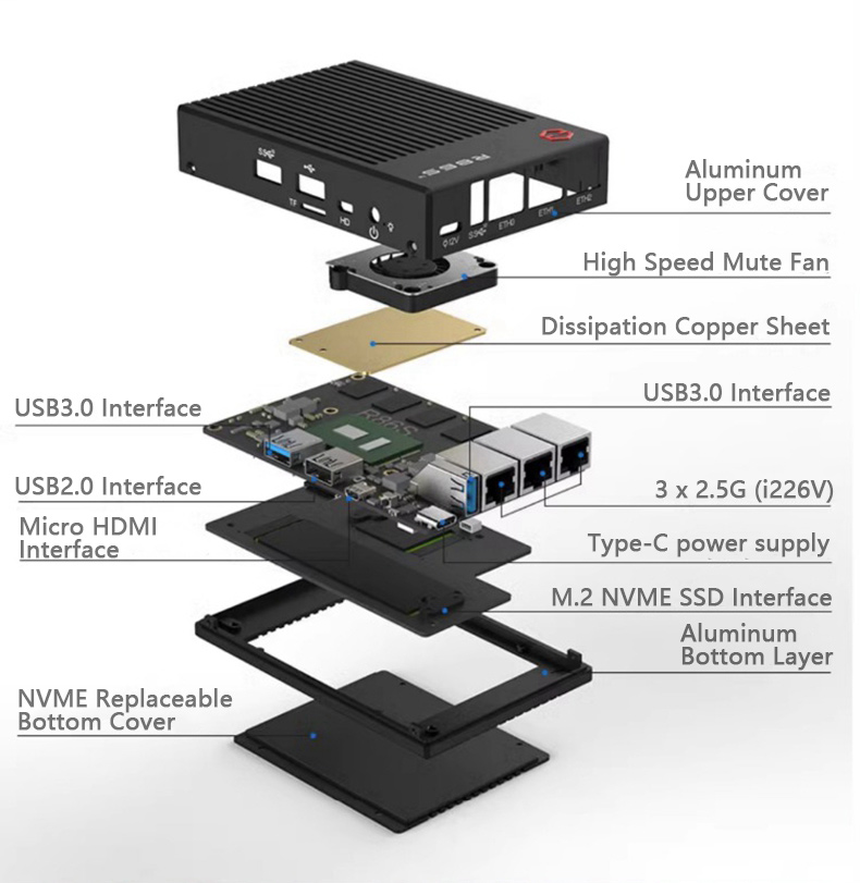 - Wired network card: 3 x 2.5G (for Intel i226 - V)