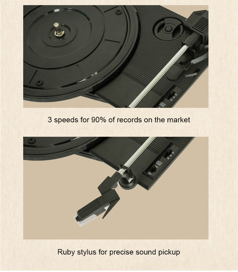 - Supports 33RPM, 45RPM and 78RPM, and 99% of records on the market