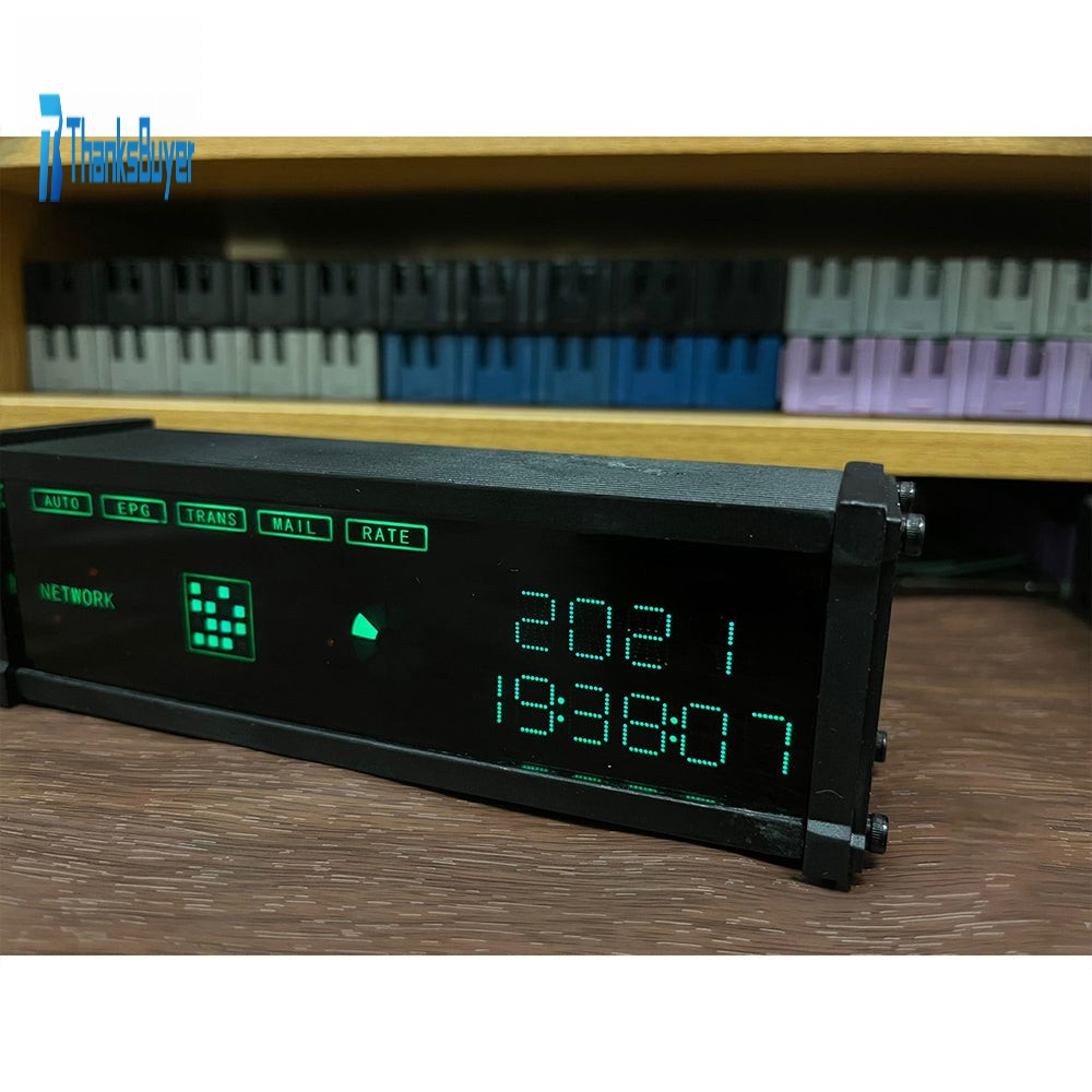Retro Desktop Clock Quasi-VFD Clock Rechargeable Electronic Clock Home Decor with Wooden Shell