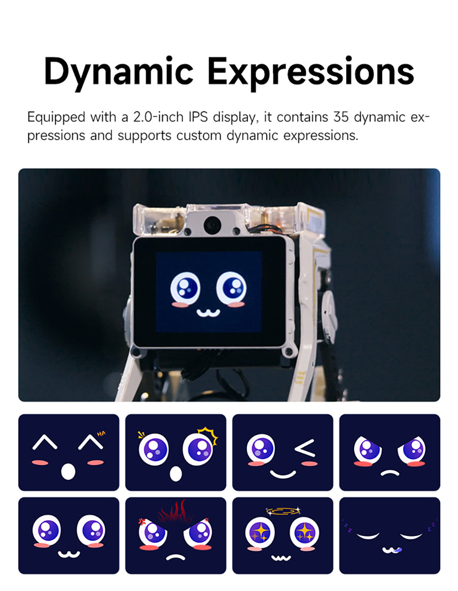 * Equipped with a 2.0-inch IPS display, it can flexibly present 35 dynamic facial expressions.