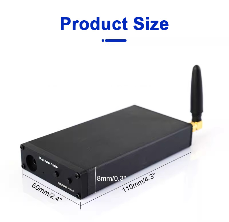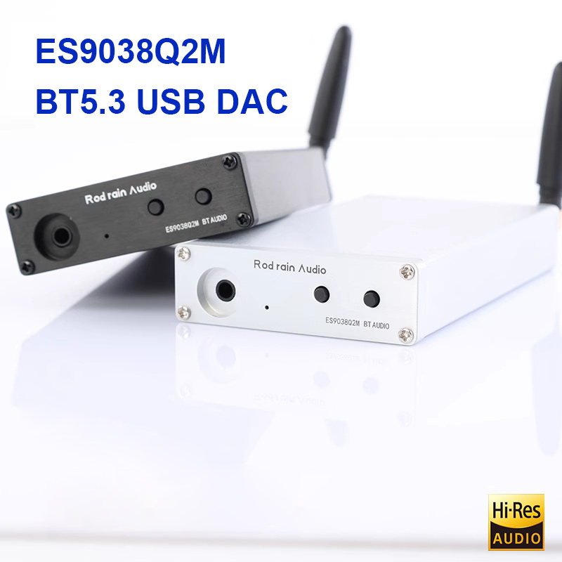 - BT5.3 portable receiver USB-C Decoder has ES9038Q2M as the core. The type-c port can be connected to a mobile phone or computer for decoding