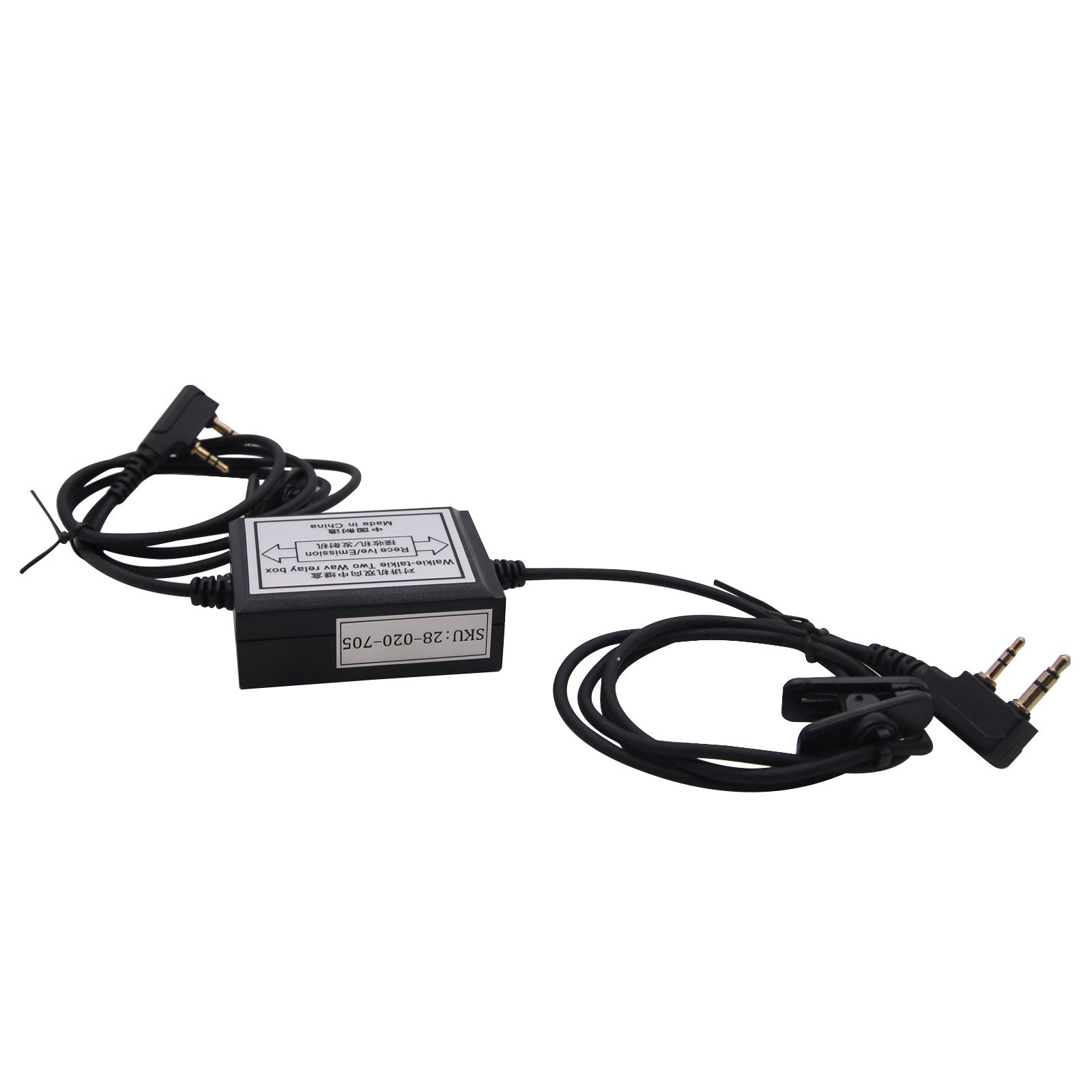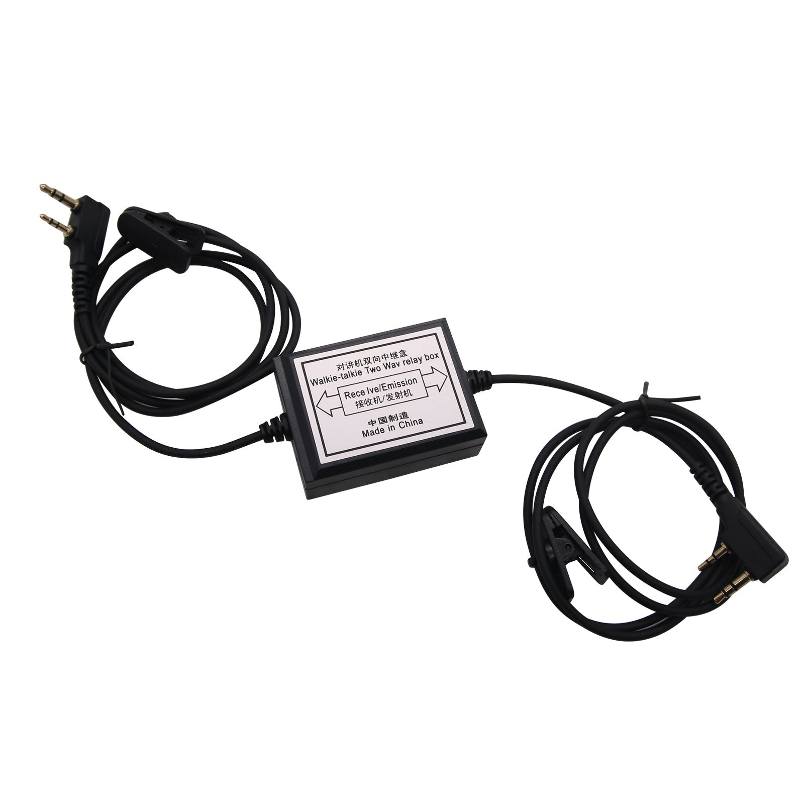 Handheld radios used currently on the market for basic use rate in 400-470MHz, most of the power 5W, this walkie talkie in open call distance can reach 5-8 km, while in dense urban, but only a short distance of 1-2 km, or less. In order to have long-distance communication, we need a repeater. Standard repeaters have a high cost, and can be complicated to install, so there was a need for a simple and inexpensive repeater. The operation is very simple, and no power supply needed. You do not need to change any part of the radio. All you need is just two handheld radios and connect the cables to the external mic/spk ports (2.5mm&3.5mm). Using two handheld walkie talkie headset jack is composed of a very practical small relay station through the relay box.