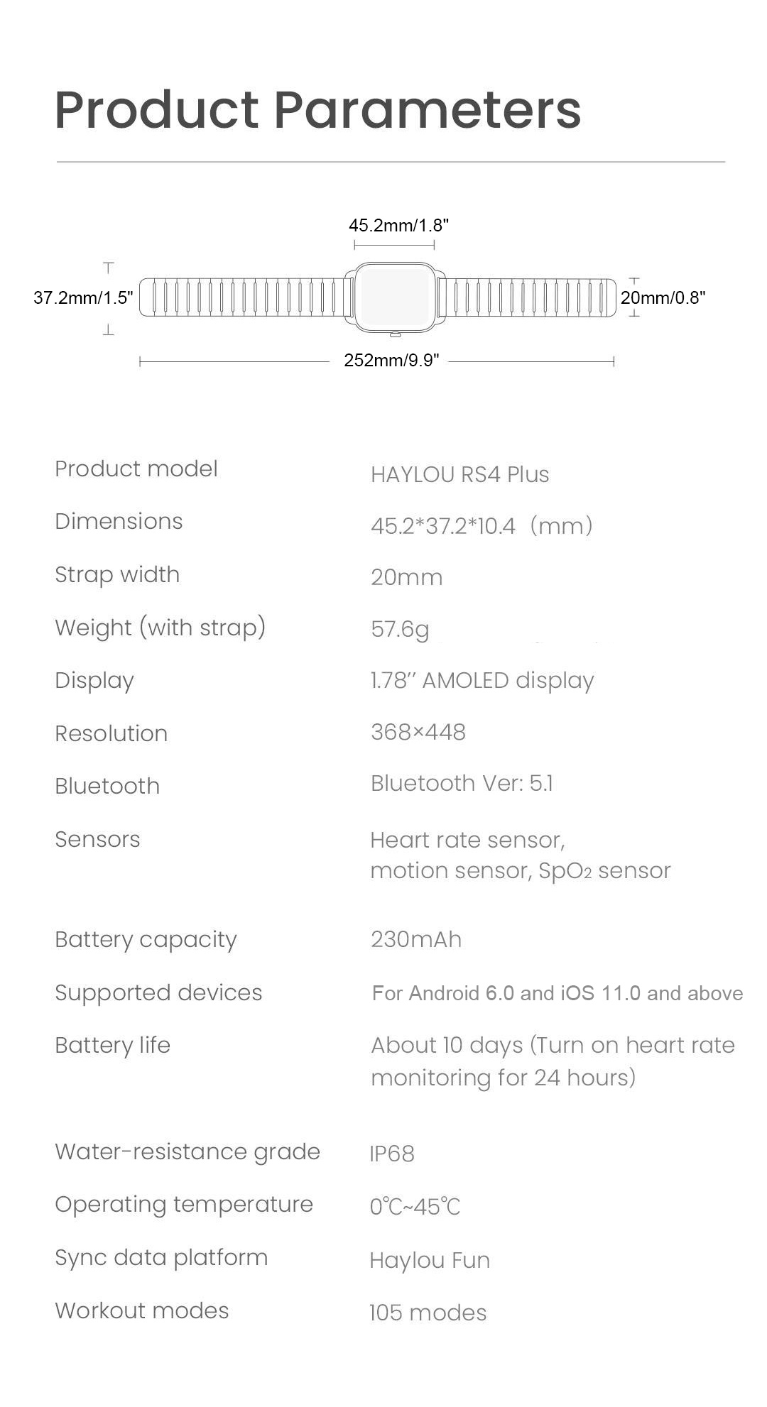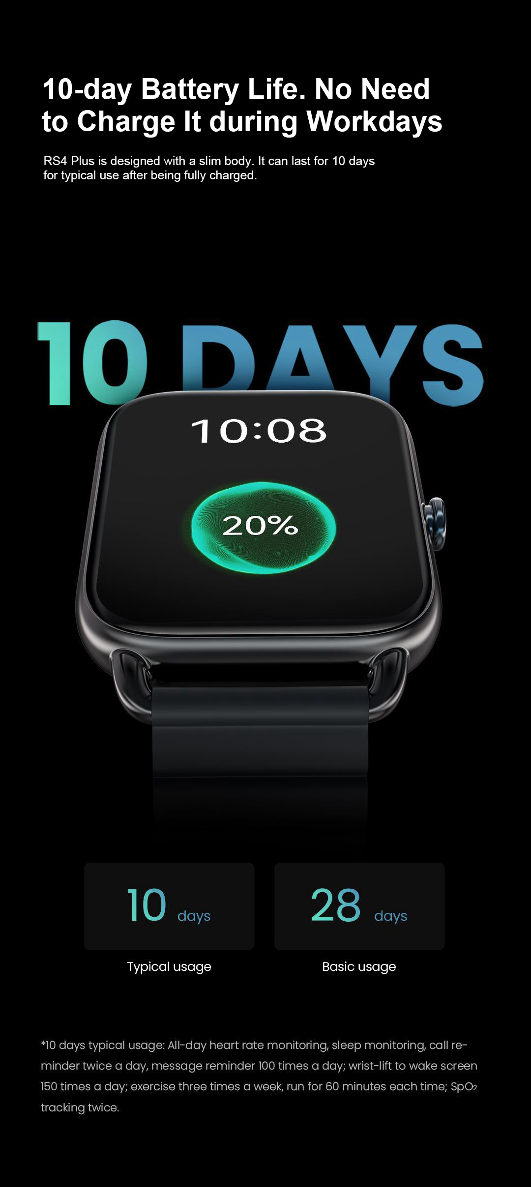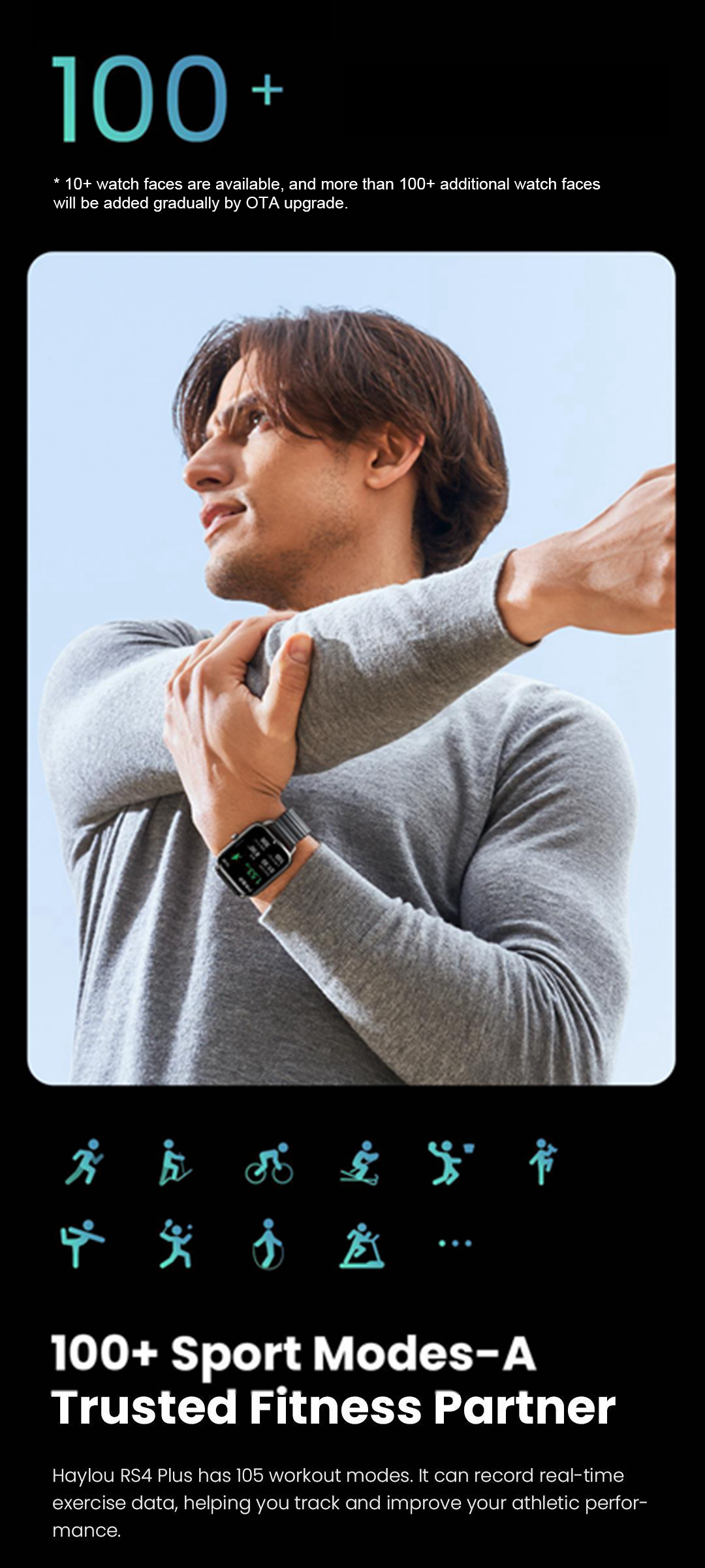 - 100+ sport modes: As a trusted fitness partner, RS4 plus has 105 workout modes. It can record real-time exercise data, helping you track and improve your athletic performance.