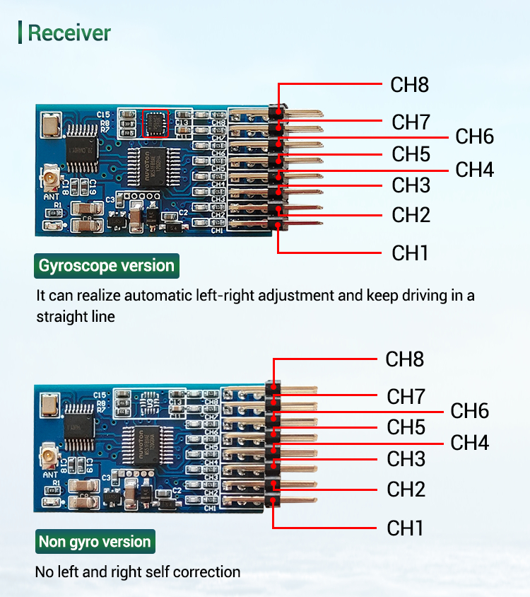 RX-08 2.4G 8CH RC Remote Controller Receiver Set (Non-Gyro Version) for Bait Boat Fishing Net Boat