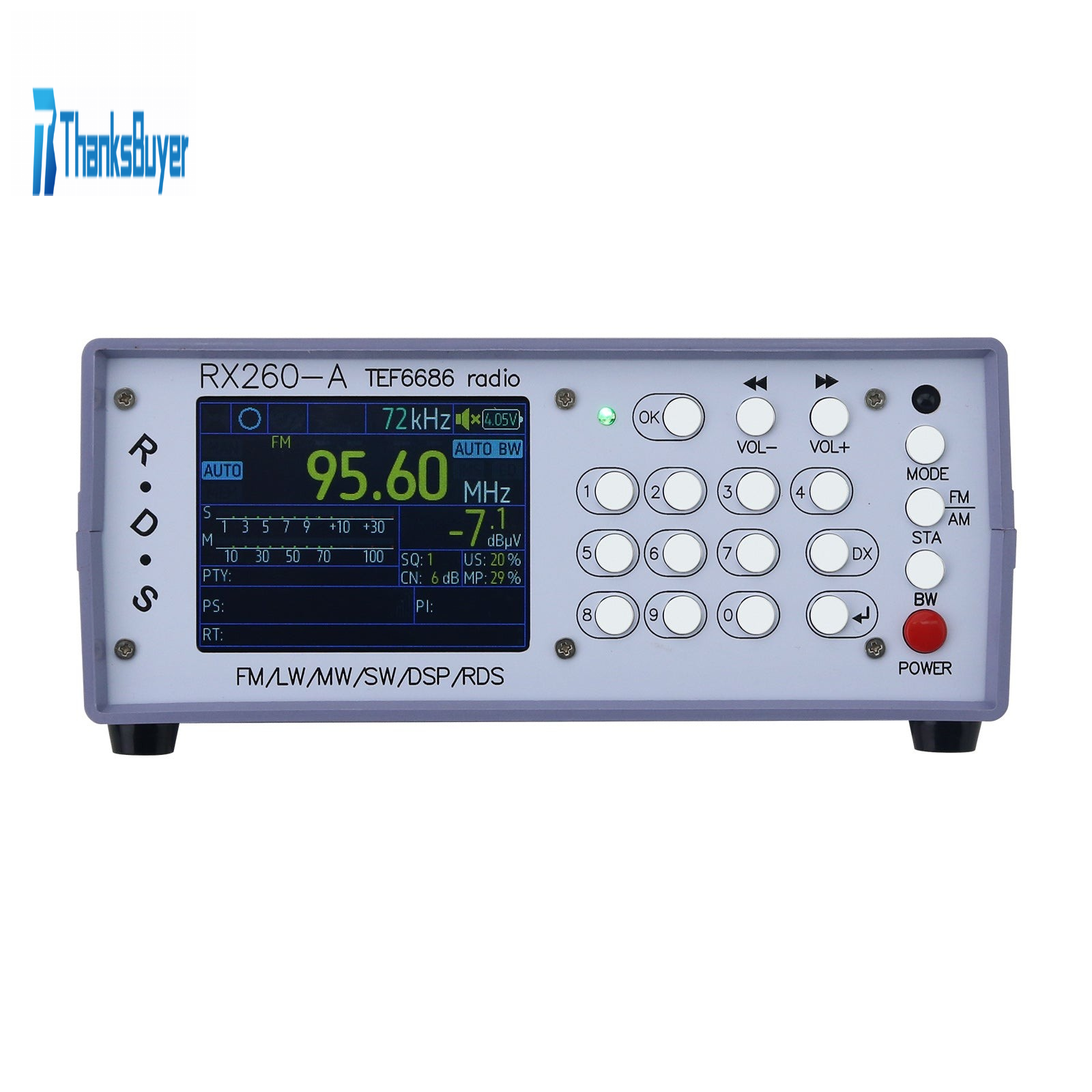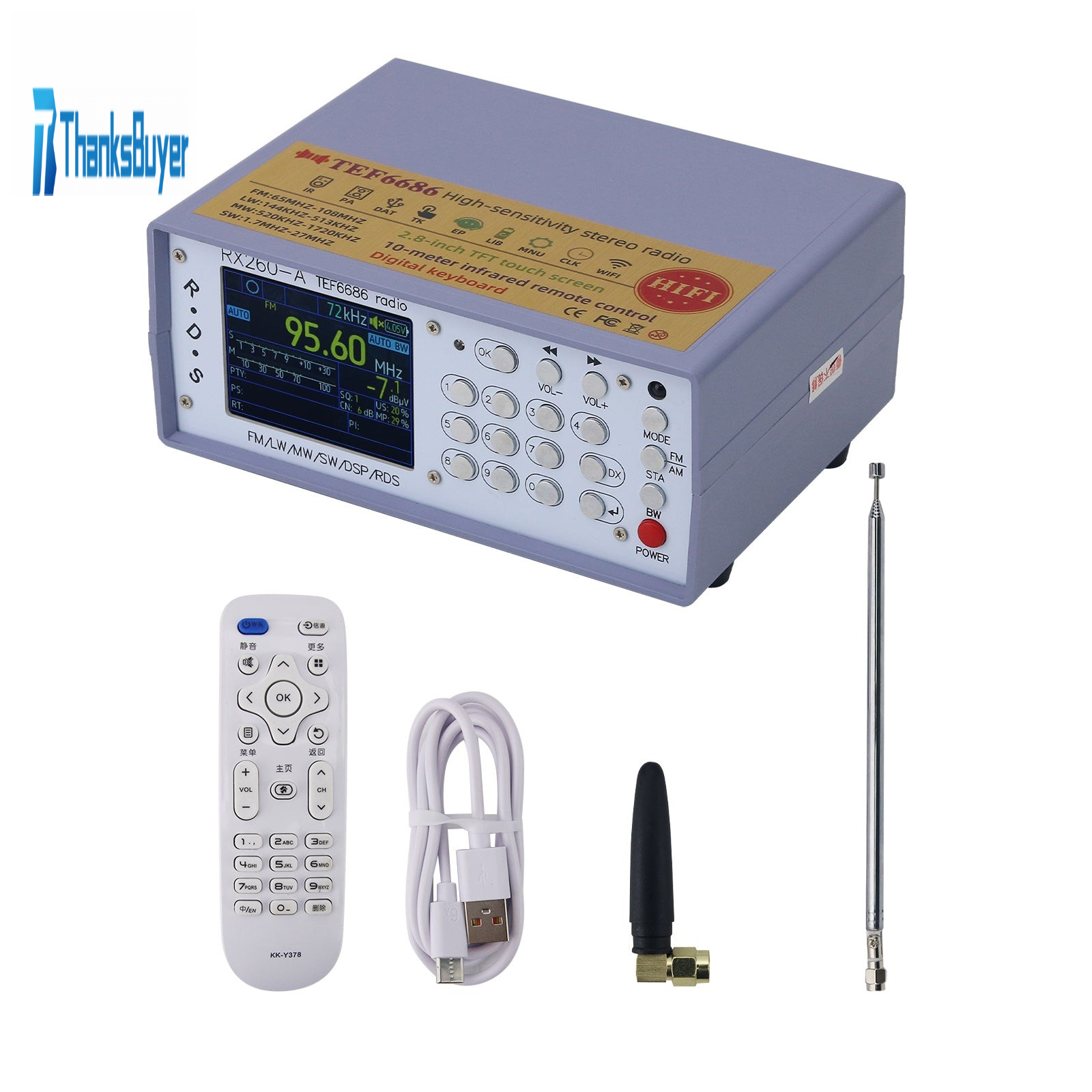 - RX260-A desktop digital TEF6686 high-sensitivity radio, infrared remote control, Bluetooth transmission, can be connected to Bluetooth earphones or amplifiers, with latest firmware optimized reception capability and anti-interference ability.