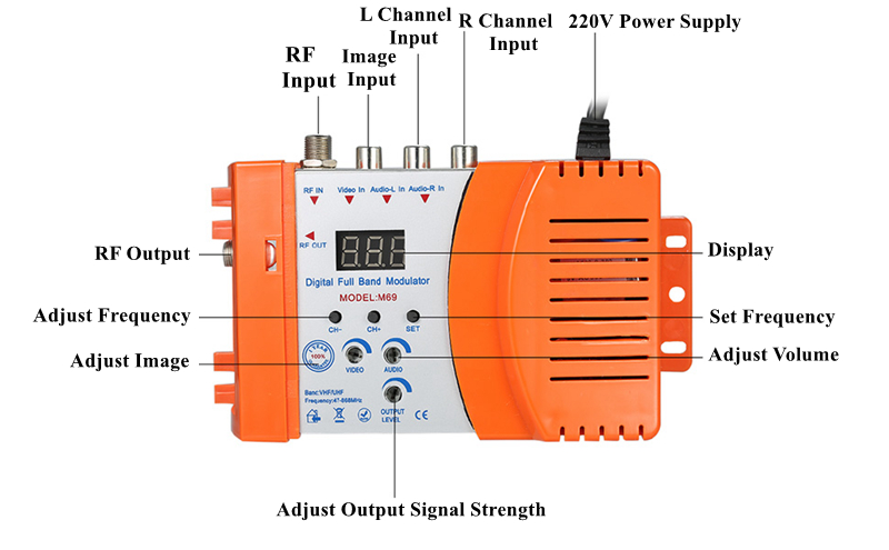 Seebest M69 RF Modulator Digital Full Band Modulator Video TV Converter VHF UHF Signal Amplifier