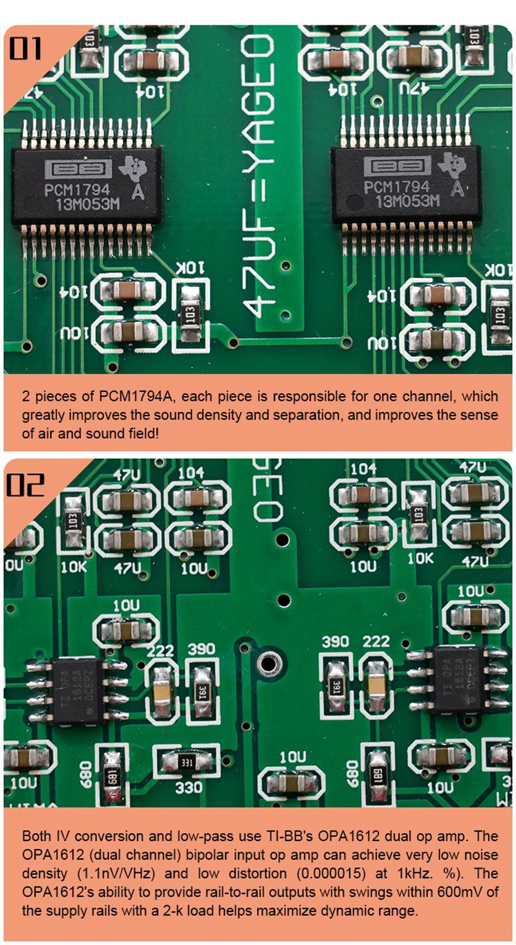 - It adopts dual 1794 decoding chip with paralleling dual core output.