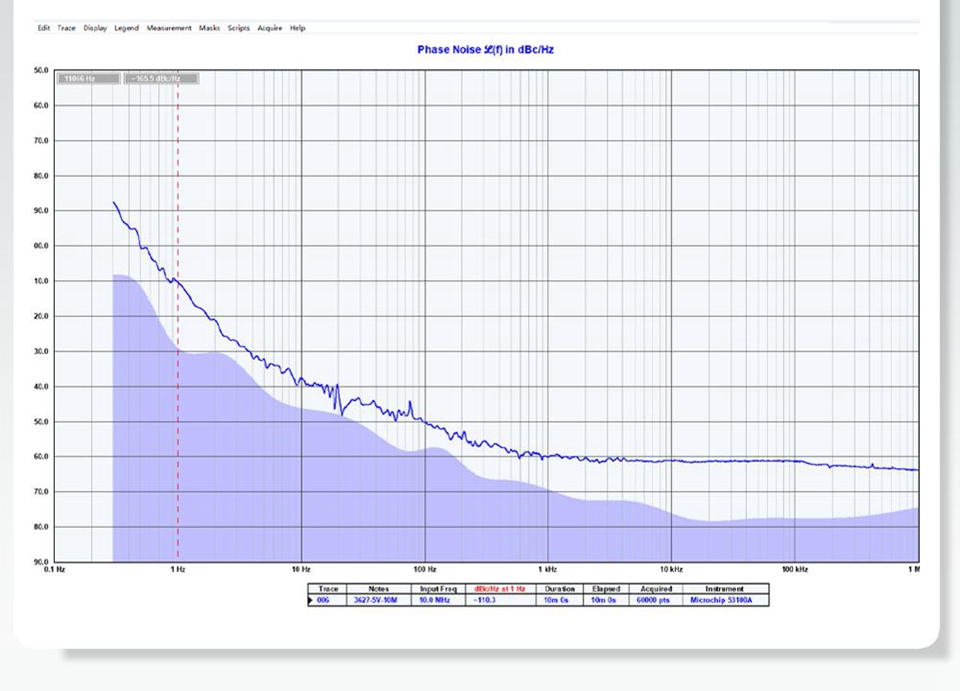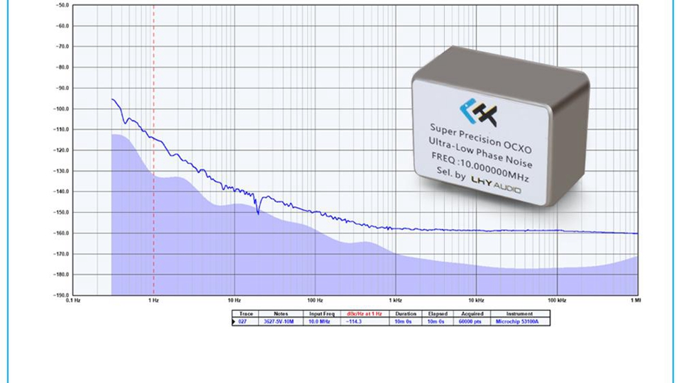 - Using SC cut OCXO with a near end noise index of -110dBc at 1Hz.