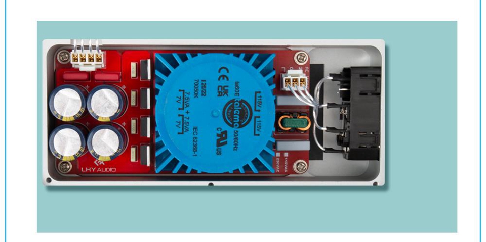 - Composed of EMI AC filtering, for Talema transformer from the UK, and high-speed rectification filtering, it suppresses noise and interference in the AC power supply, improves the purity of the power supply, and allows your audio system to play abundant, accurate, stable, clean music without any compression effect even under low-frequency pulse conditions.